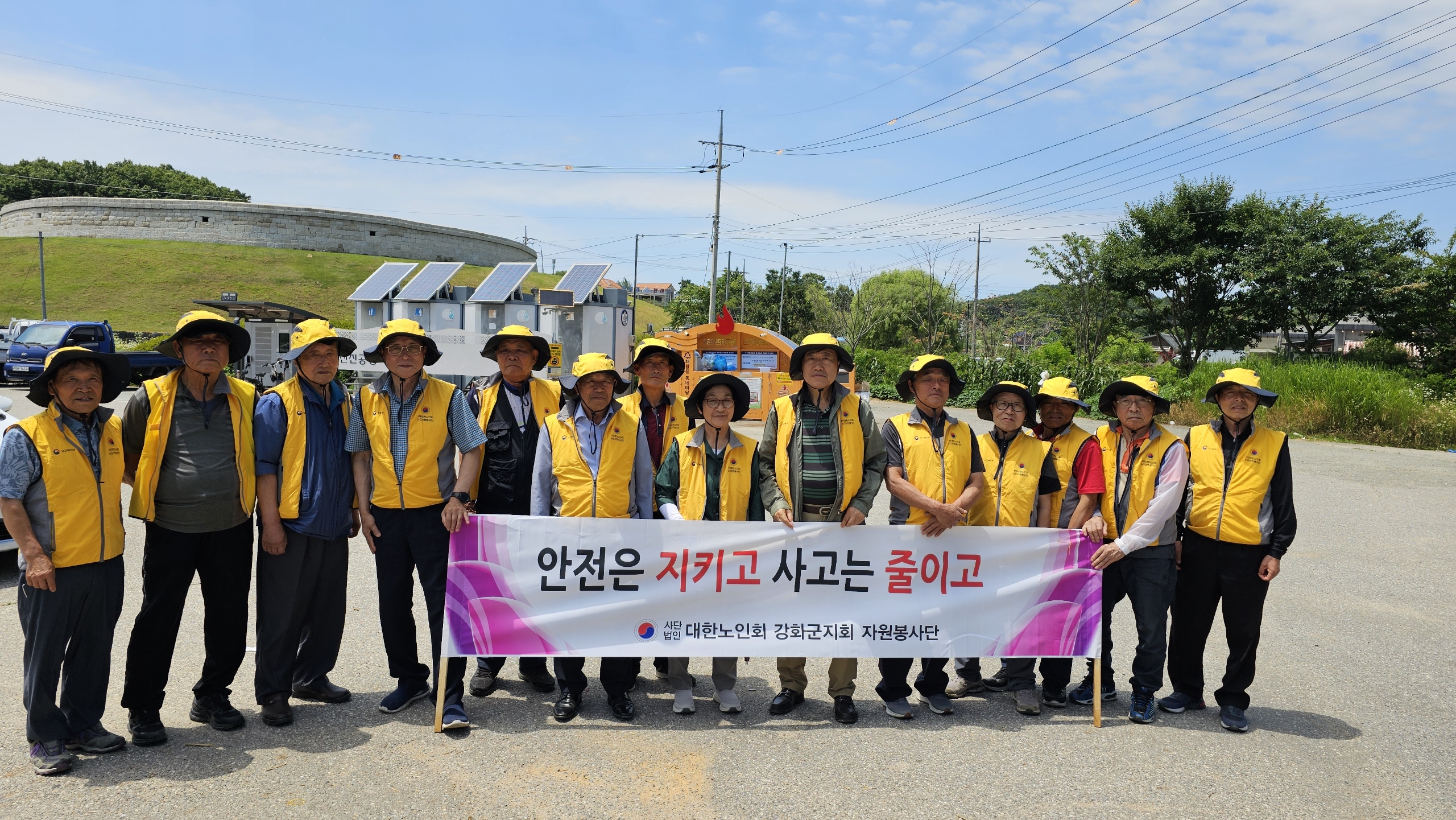 강화군 대한노인회 선원면분회(분회장 김선하)가 지난 25일 지산리 일대에서 올바른 교통질서 확립을 위한 캠페인 활동을 전개했다.
