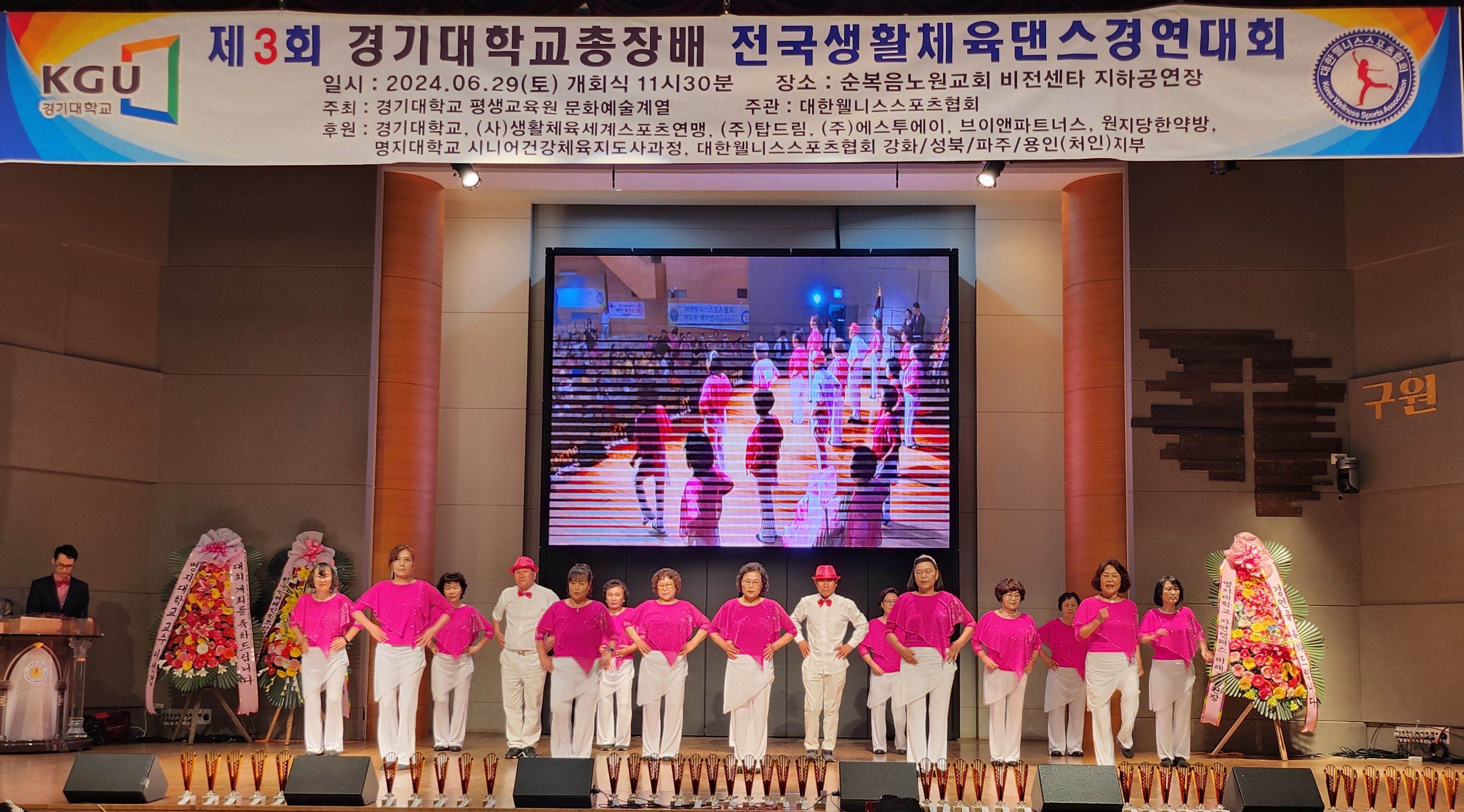 이번 대회는 경기대학교 평생교육원 문화예술에서 주최하고, 대한웰니스스포츠협회가 주관한 행사로 전국에서 30여 개 팀이 참가했다. 강화군노인복지관에서는 수강생 160명 중 36명의 어르신들이 이현순 강사의 지도하에 연습에 매진하며 실력을 키워왔다.
