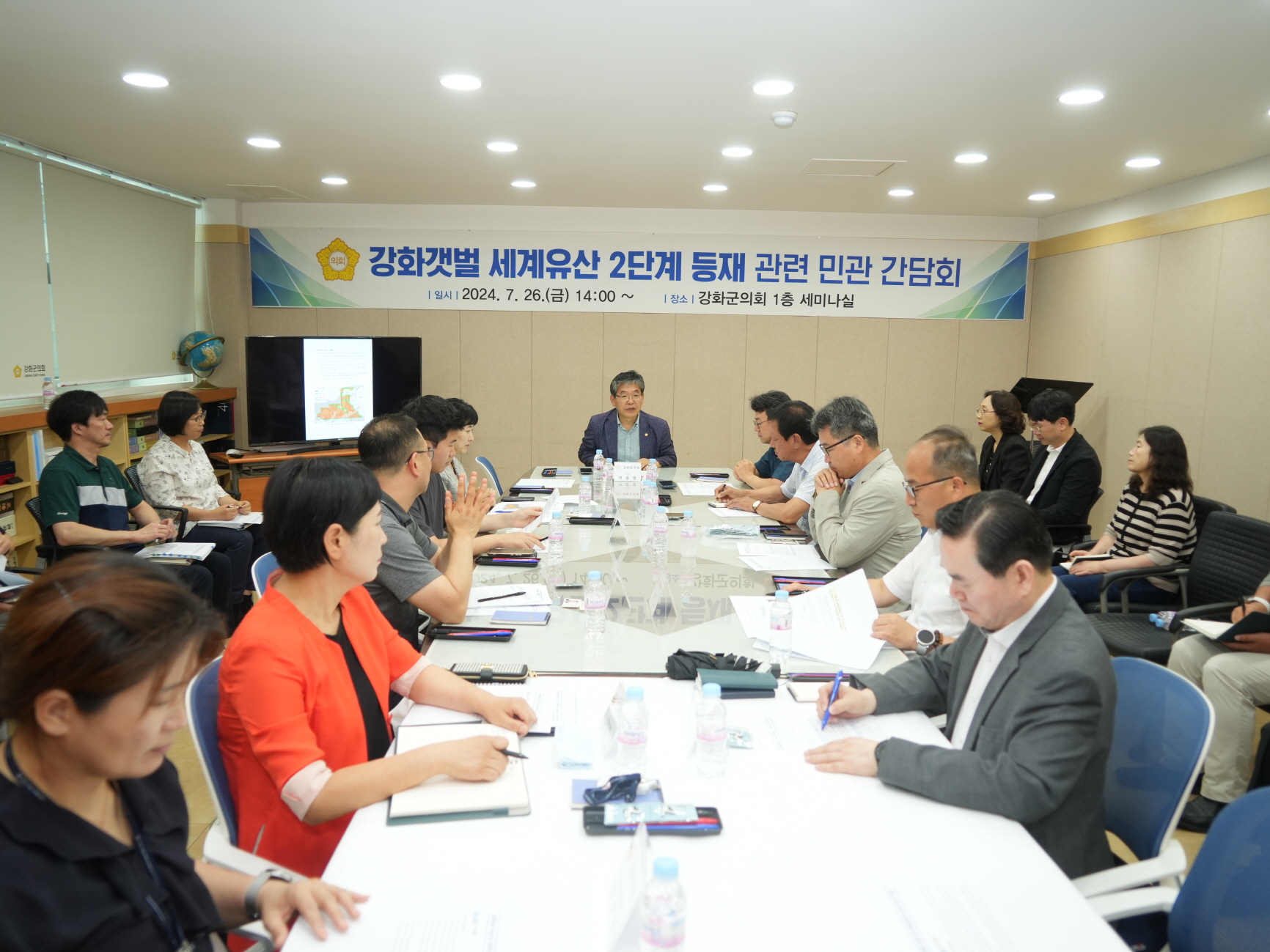 강화군의회(의장 배충원)는 지난 26일 의회 세미나실에서 ‘강화갯벌 세계유산 2단계 등재’ 관련 민관 간담회를 개최했다.