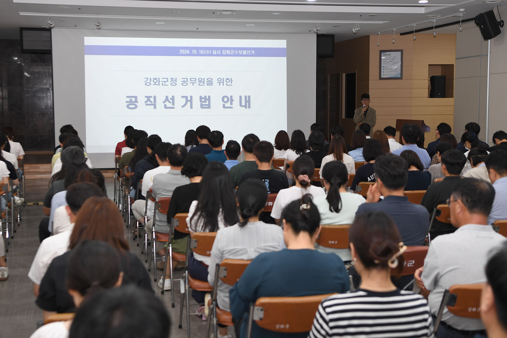 강화군이 5일 군청 진달래홀에서 오는 10월 16일 치러질 강화군수 보궐선거를 대비해 공직자 대상 공직선거법 교육을 실시했다고 밝혔다