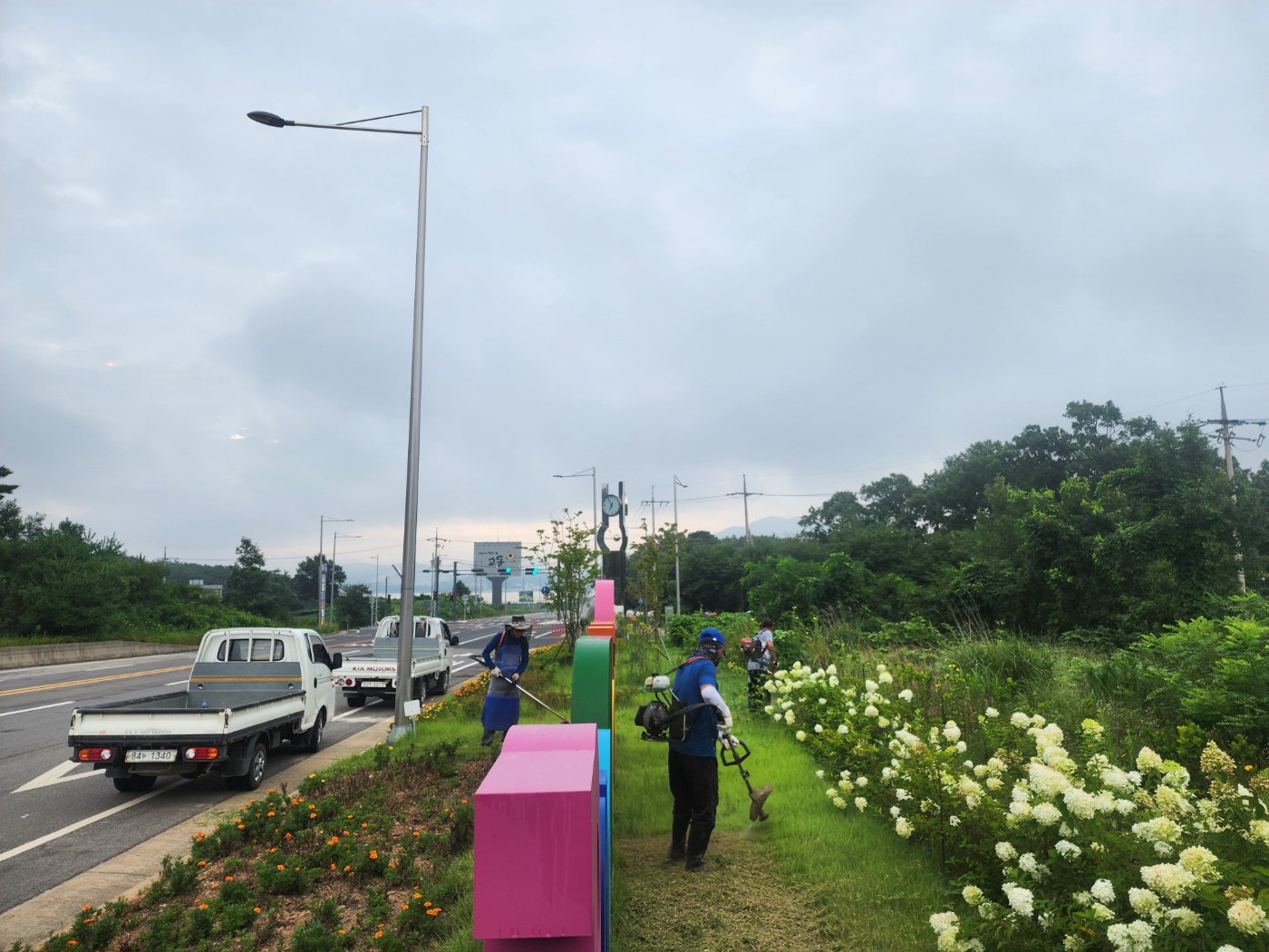 이번 작업은 ‘I LOVE 교동’ 조형물이 설치된 교동대교 입구 화단에서 실시했으며, 장마로 무성해진 잡초를 제거해 화단의 미관을 개선하는 데 중점을 두었다.