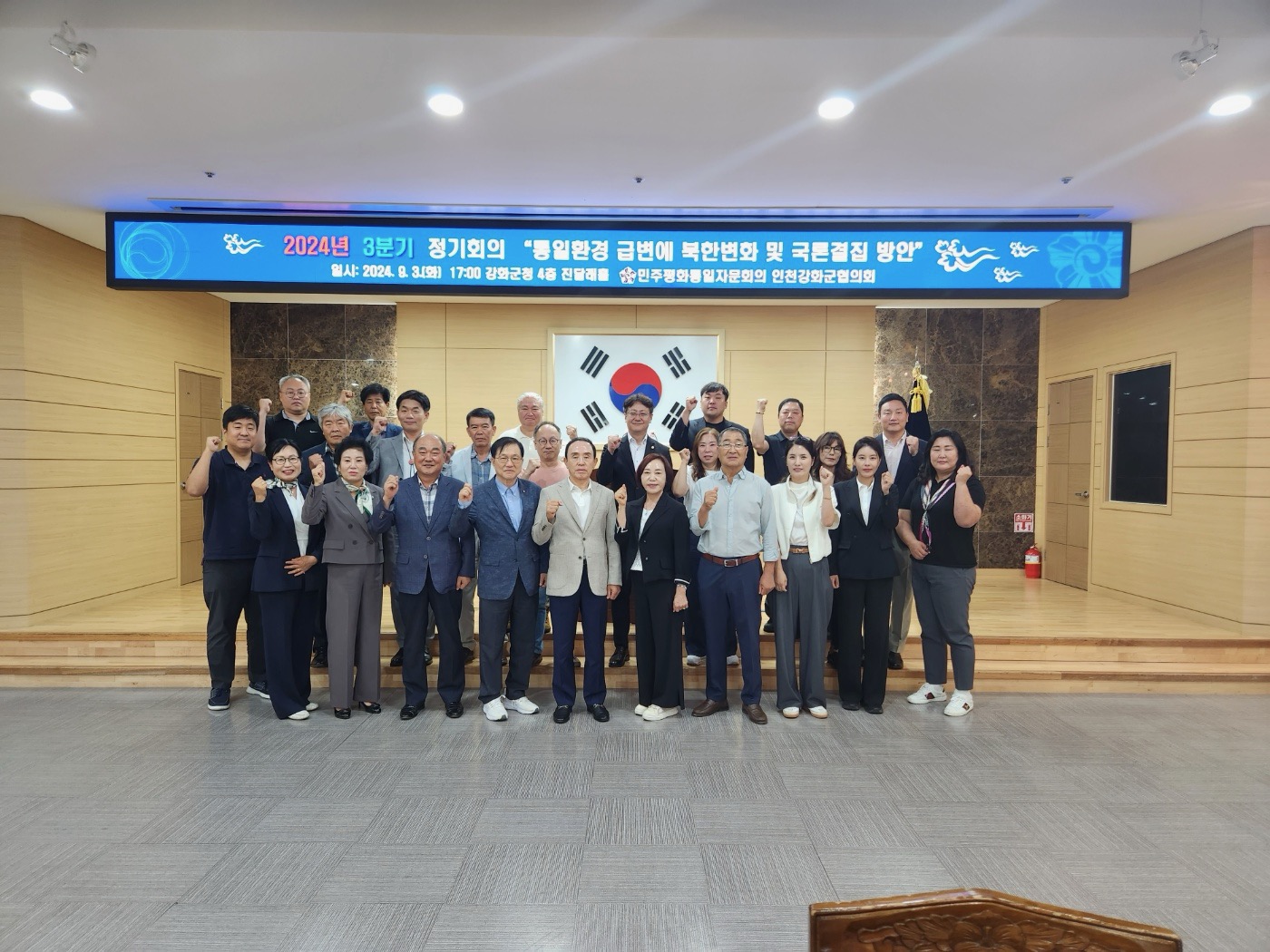민주평화통일자문회의 강화군협의회(협의회장 김경호)는 지난 3일 군청 진달래홀에서 자문 위원 25명이 참석한 가운데 ‘통일환경 급변에 따른 북한 변화 및 국론결집 방안’을 주제로 2024년 3분기 정기 회의를 개최했다.