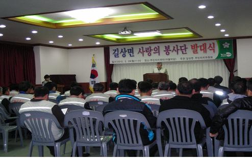 길상면주민자치위원회(위원장 김영기)는 지난 29일 오전 길상면주민자치센터에서 주민자치위원, 자원봉사자, 이장단, 새마을남녀지도자, 기관단체장등 60명이 참석한 가운데 “길상면 사랑의 봉사단 발대식”을 가졌다