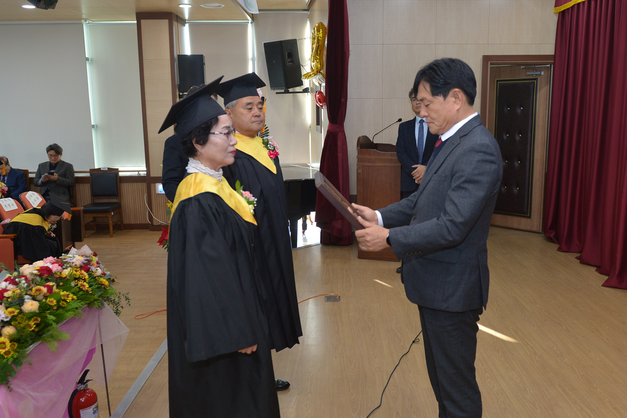 졸업식은 노인강령 낭독, 졸업장 및 표창수여, 내빈축사 순으로 진행됐다.