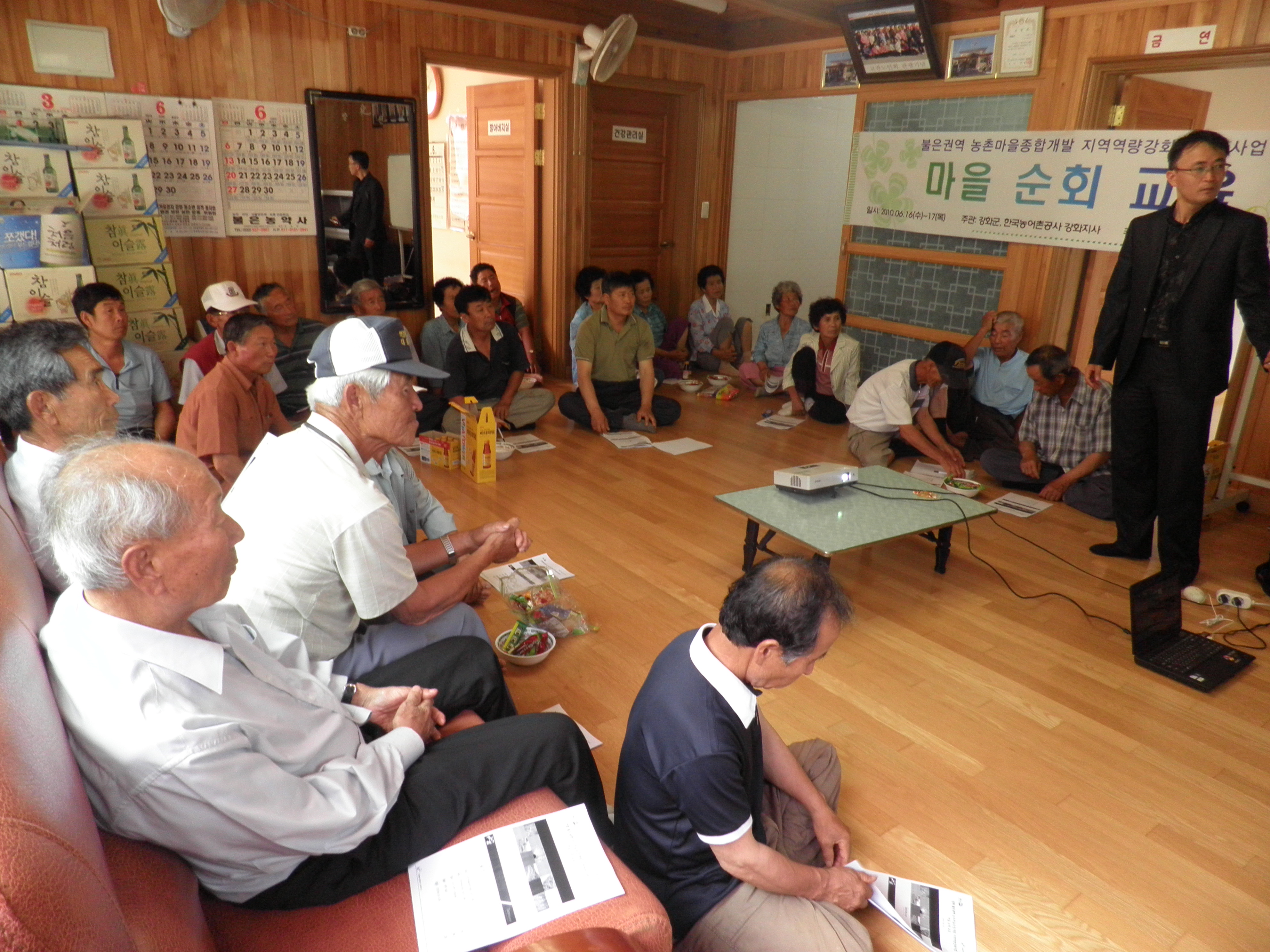 강화군 불은면 고능리, 두운리, 삼동암리를 대상으로 한국농어촌공사 강화지사(지사장.안길회)에서 시행하고 있는 강화군 “불은권역 농촌마을 종합개발사업”에 대한 권역 주민들의 이해와 역할인지 및 불은권역 사업에 대한 공감대를 형성하기 위한 마을순회교육을 6.16 ~6.17일까지 2일간 실시하였다.