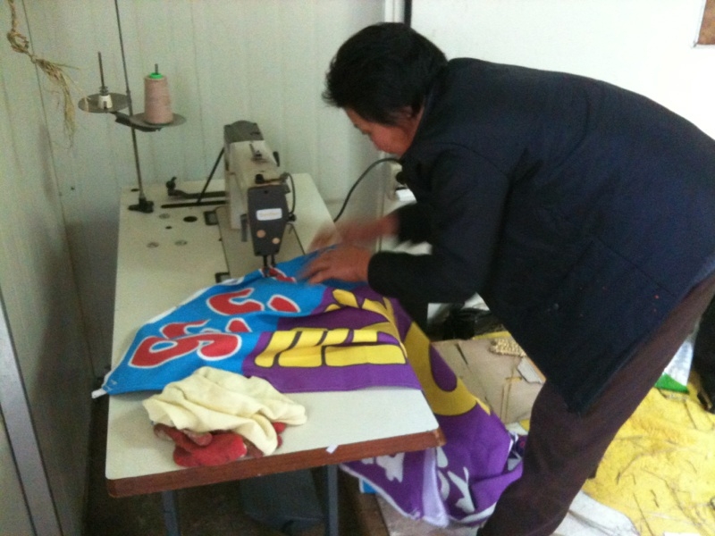 (사진은 일자리 참가자가 마대자루를 만드는 장면)