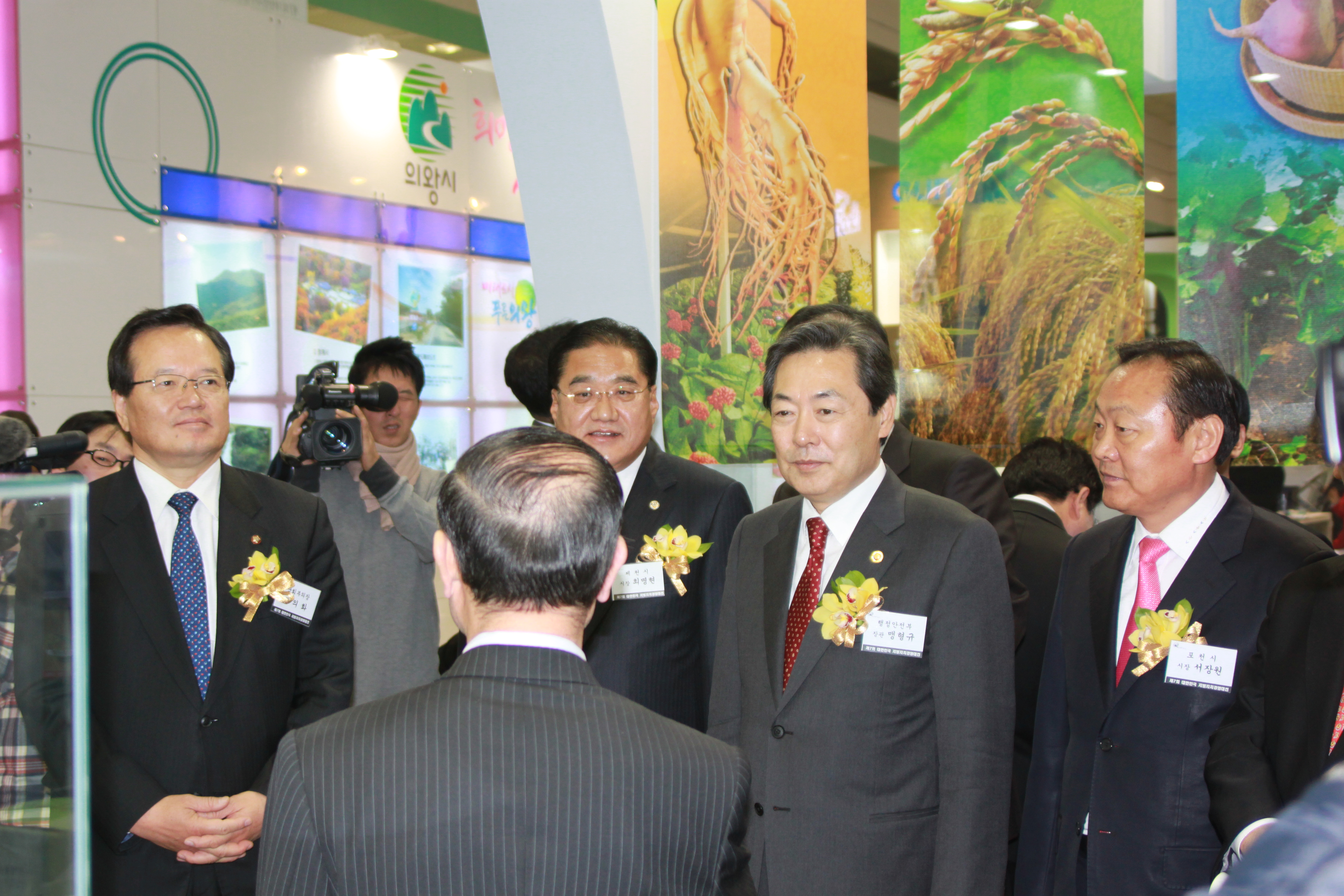 (사진은 맹형규 행정안전부 장관이 강화군청 부스를 방문해 관계자로부터 설명을 듣고있다)