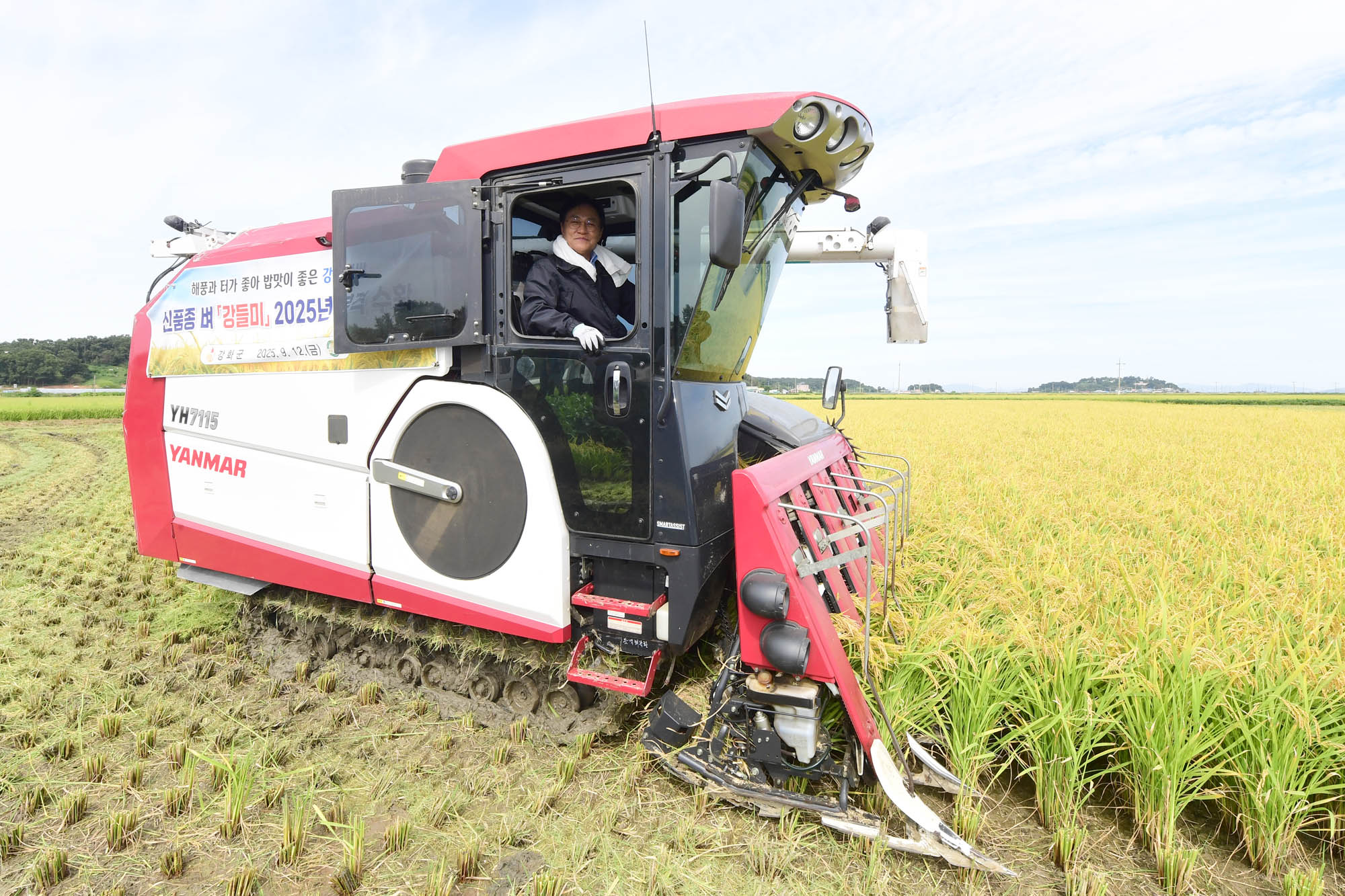강화군(군수 박용철)은 12일 교동면 삼선리에서 신품종 조생종 벼 ‘강들미’ 수확 행사를 열었다.