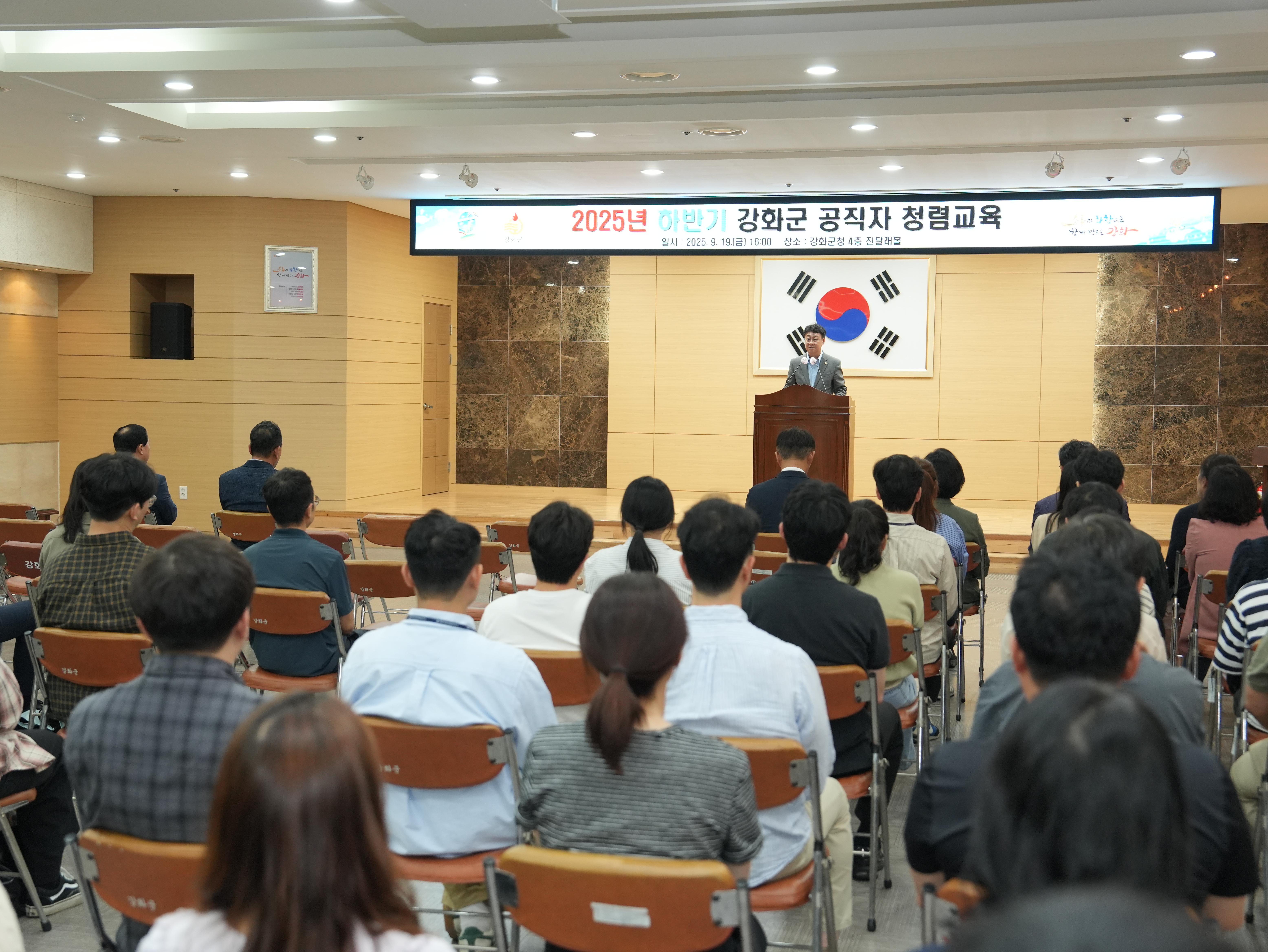 강화군의회(의장 한승희)는 지난 19일 강화군 진달래홀에서 진행된 2025년 하반기 강화군 공직자 청렴 교육에 전체 의원이 참석해 함께 했다고 밝혔다.