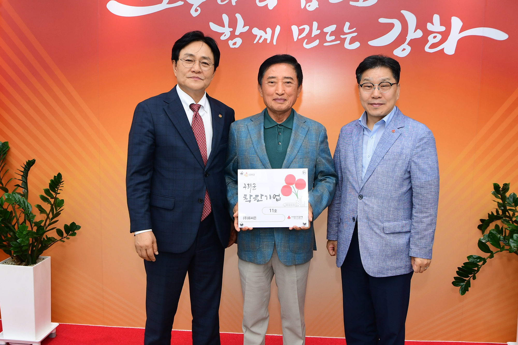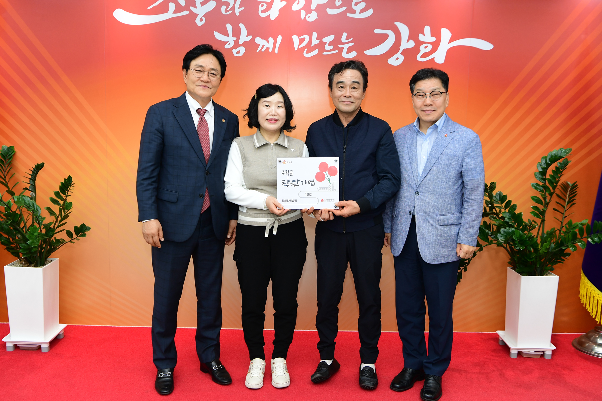 ㈜류씨․은(대표 유동섭)은 이날 관내 어려운 이웃을 돕기 위해 성금 500만 원을 기탁 했으며, 강화섬쌀밥집은 지난 8월 이웃 돕기 성금 1천만 원을 전달한 바 있다.