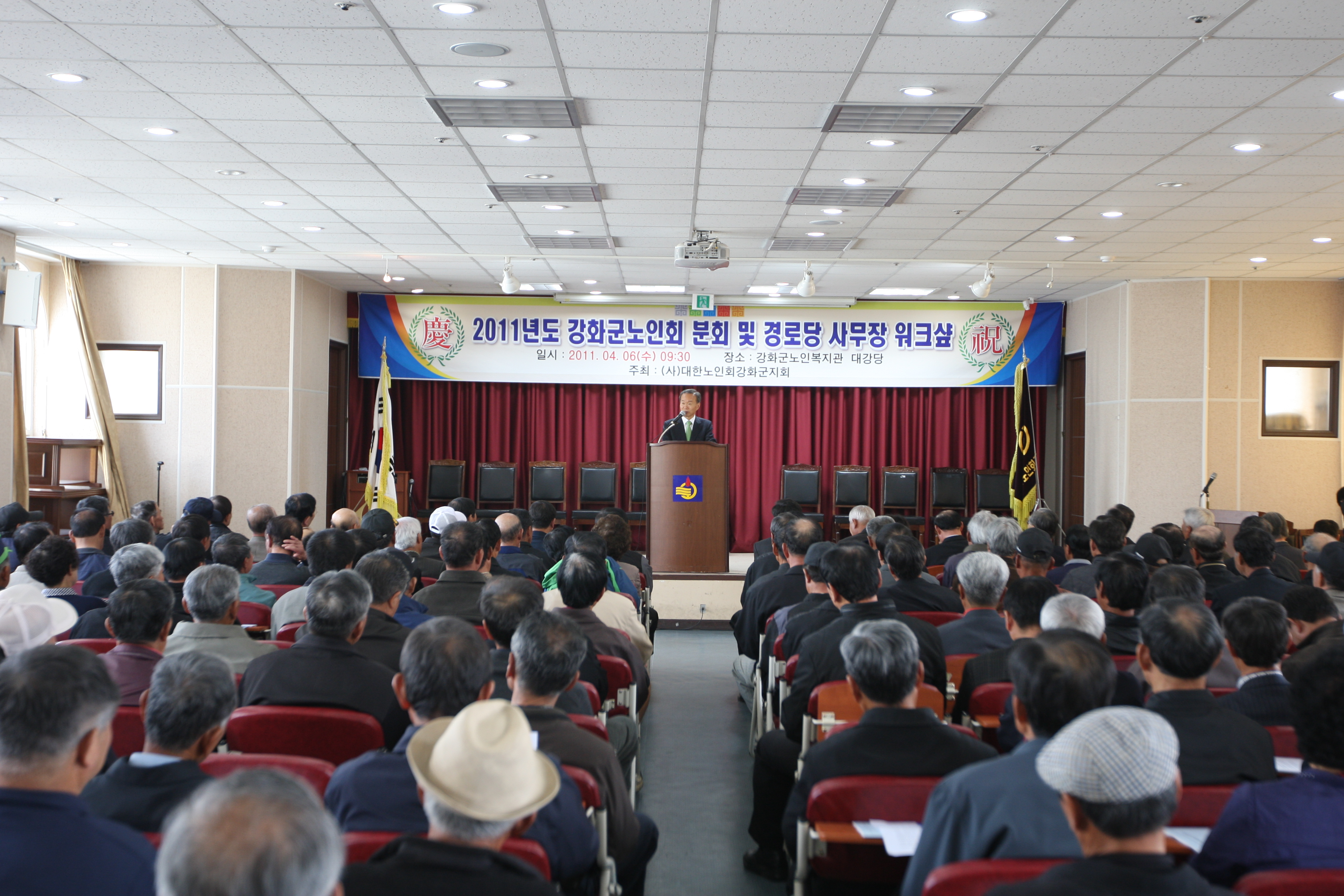 ◇ 강화군노인회(회장:박용렬)는 2011년도 경로당 사무장에 대한 워크숍 및 직무교육을 지난 6일 노인복지관 4층 강당에서 관내 기관단체장, 시·군의원, 경로당 사무장 등 250여명이 참석한 가운데 개최했다.