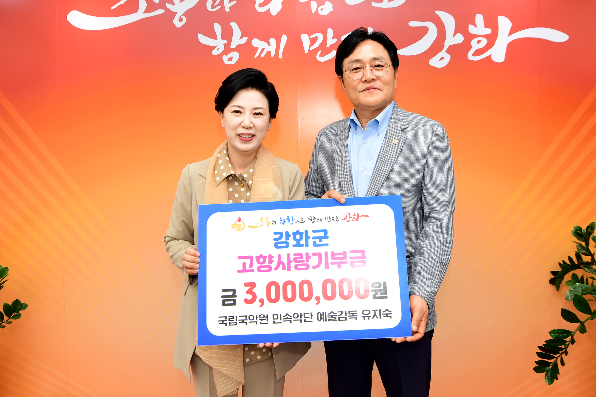 강화군(군수 박용철)은 지난 15일, 강화 양사면 출신의 국립국악원 민속악단 유지숙 예술감독이 고향사랑기부금 300만 원을 기부했다고 밝혔다.
