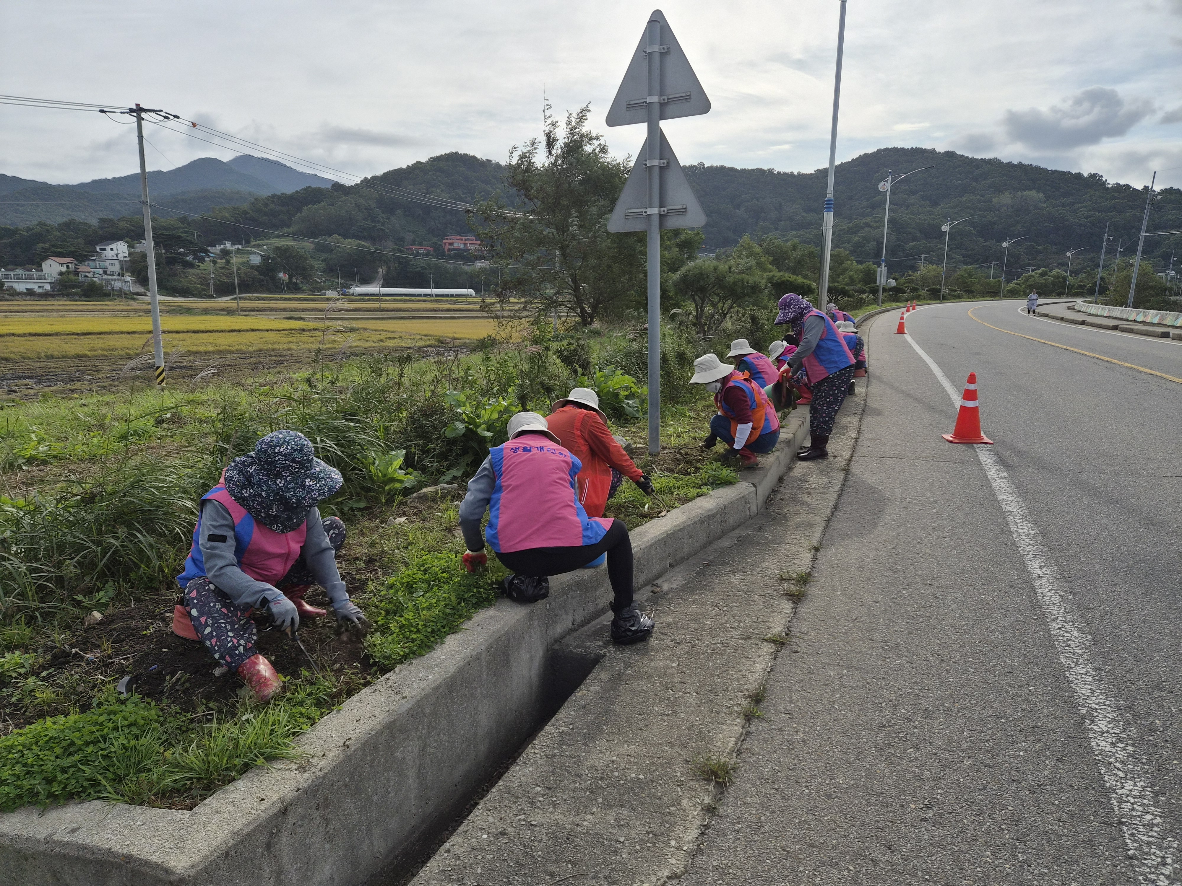 양도면 생활개선회, 건평리 해안도로 가로화단 환경 정비 실시