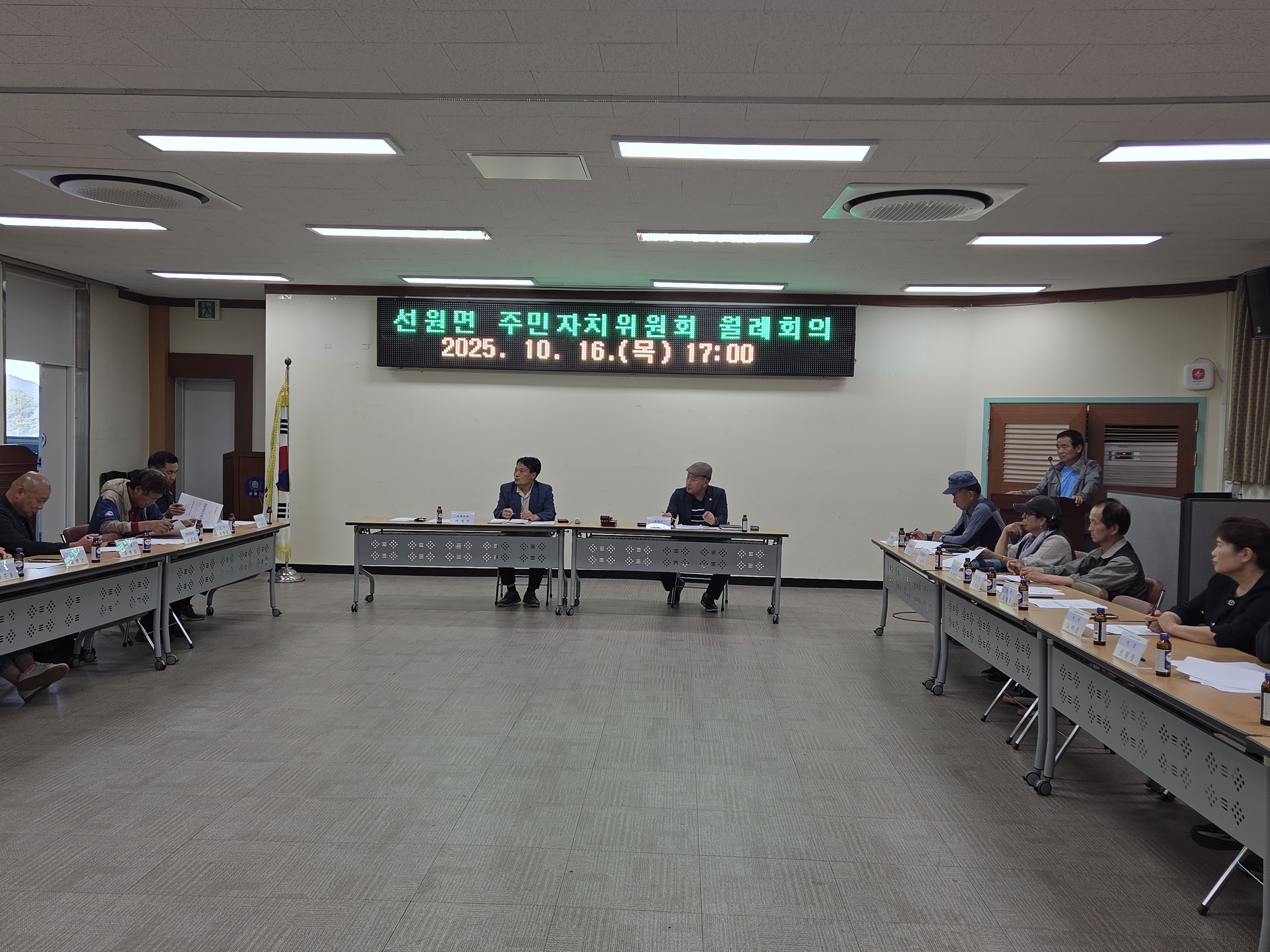 강화군 선원면 주민자치위원회(위원장 박용섭)는 지난 16일, 선원면사무소 2층 다목적실에서 10월 월례 회의를 개최했다.