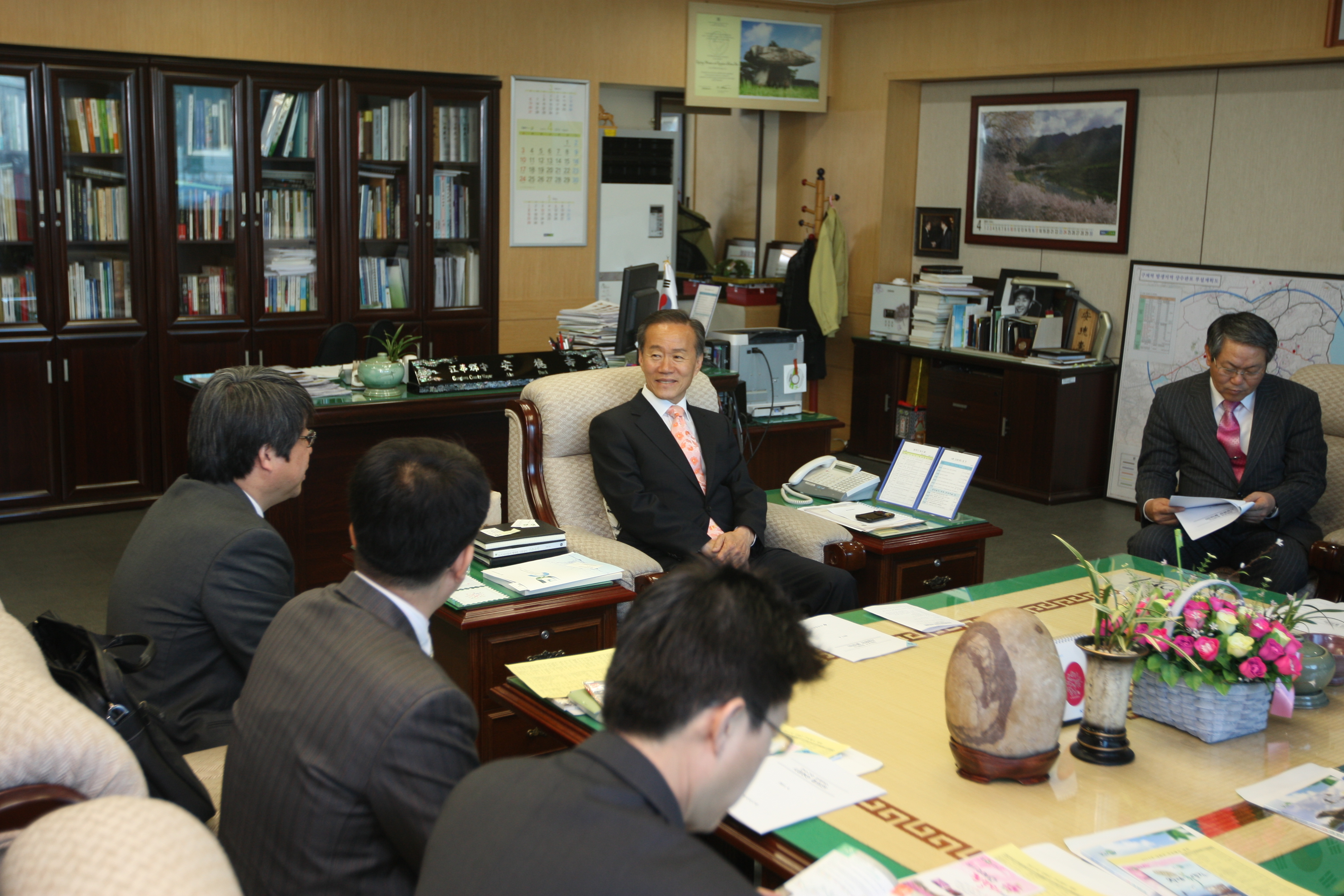 안덕수 군수는 ①강화산업단지의 단계적 조성방안 및 환경친화・청정산업 기업유치를 위한 업종 선정방안, ②개발행위 급증 및 난개발에 따른 비도시지역 성장관리계획제도 도입방안, ③외규장각・팔만대장경・고인돌 등 문화유산의 홍보예산 확보 및 관광자원화 중장기계획 수립, ④중앙정부 지원사업 유치를 위한 군・구와 연구원 간의 협력체계 구축 등 강화군에서 풀기 어려운 문제들을 함께 공유하고 해결해 나가는데 협조를 당부했다.