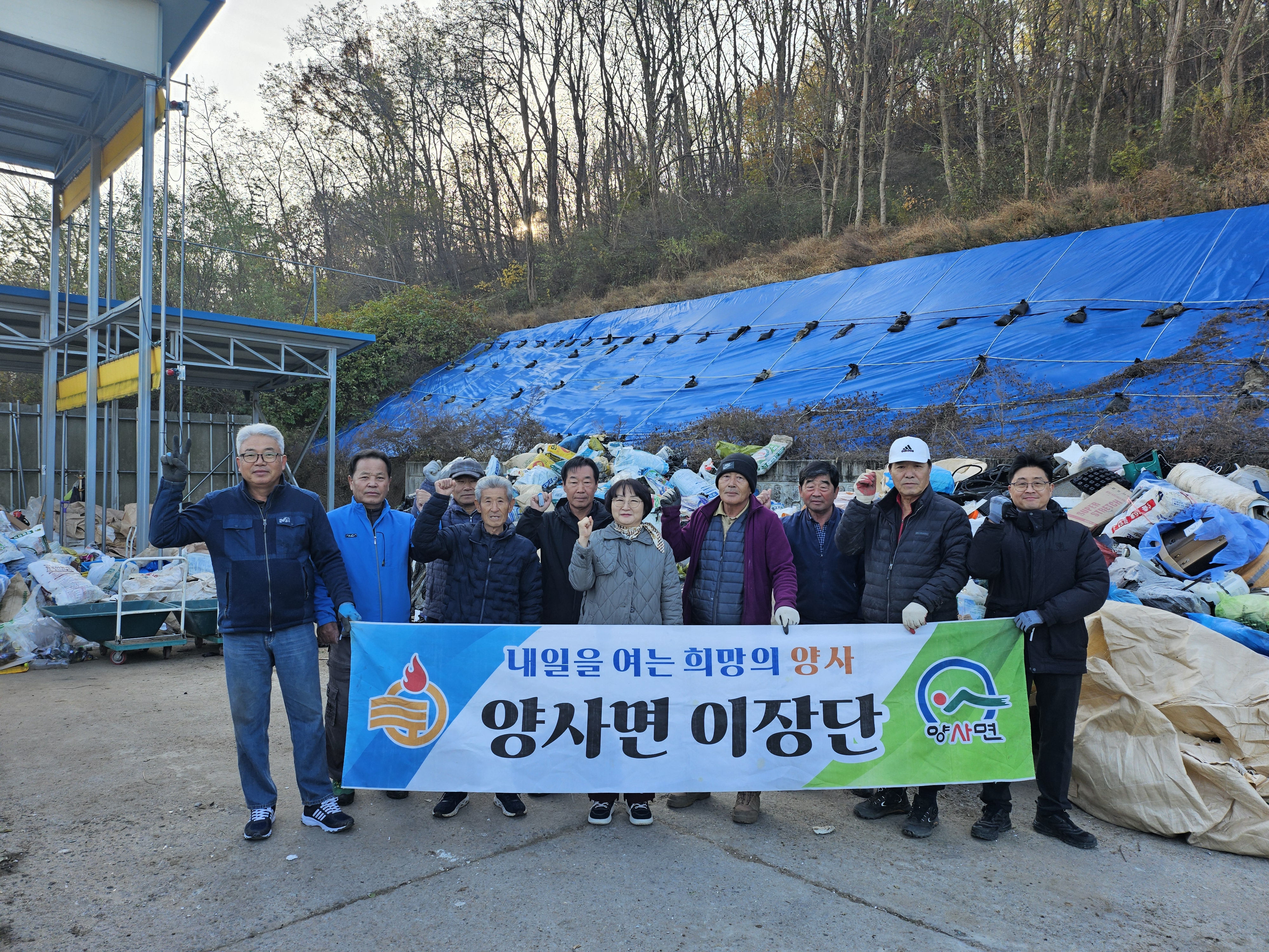 이지영 양사면장은 “이번 수거 활동이 불법 소각 근절로 이어져 미세먼지 절감에 도움이 되길 바란다”며, “올바른 분리배출 캠페인을 지속적으로 추진해 자원 순환형 농촌을 만들어가겠다”고 밝혔다.