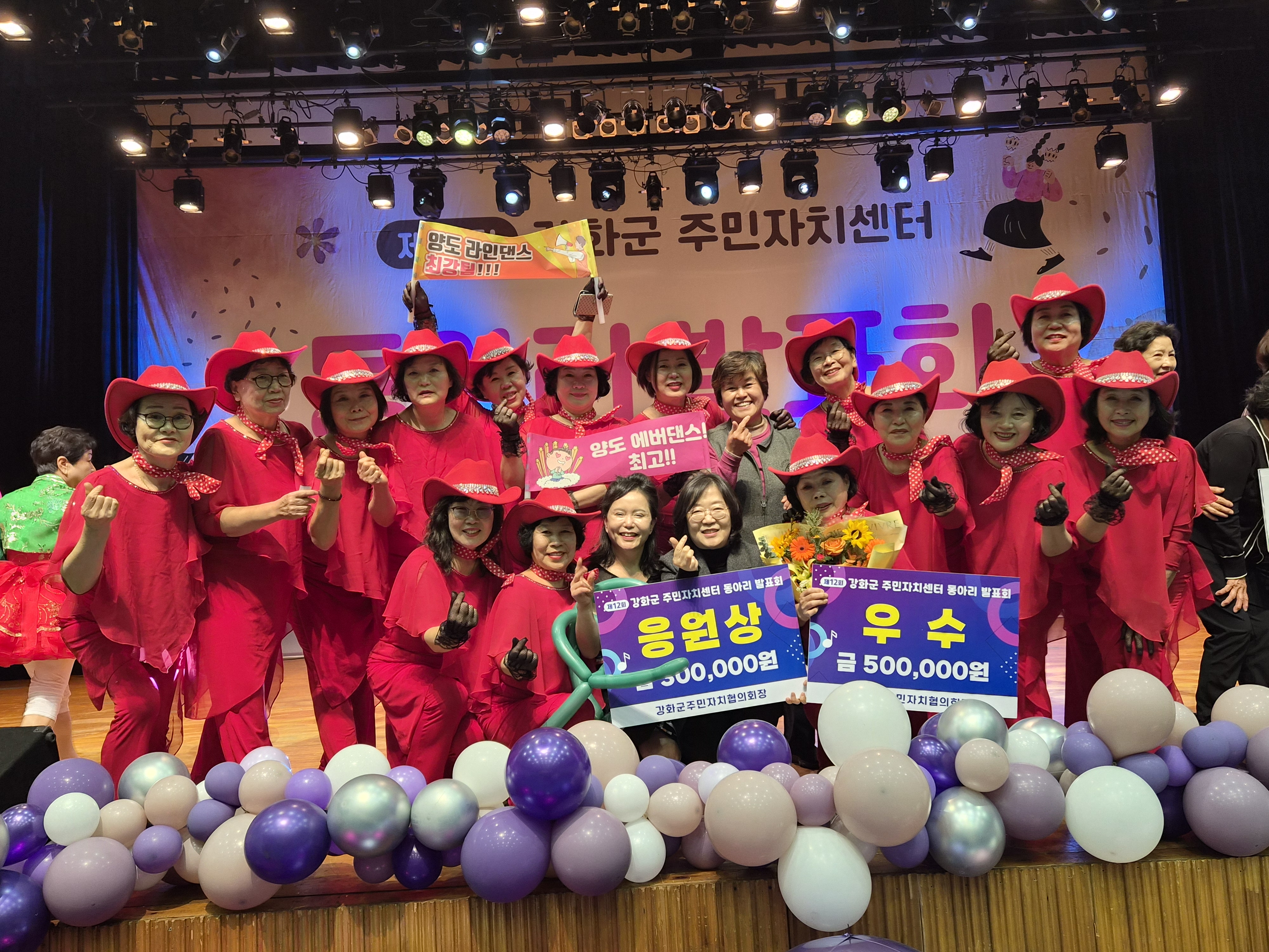 강화군 양도면(면장 조현미)은 지난 20일 강화문예회관에서 열린 제12회 강화군 주민자치센터 동아리 발표회에서 양도면 라인댄스 동아리가 ‘우수상’을 수상했다고 밝혔다.
