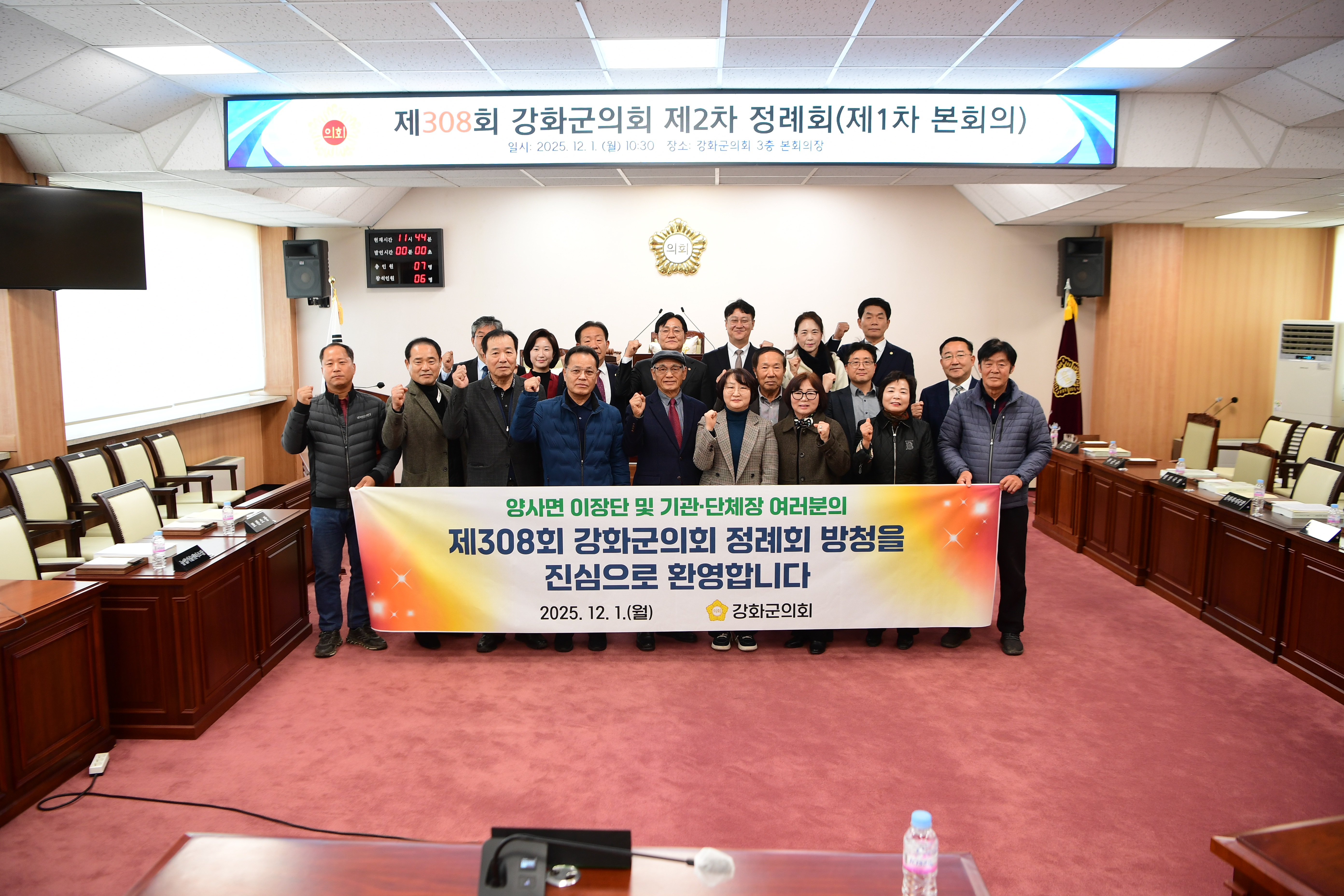 강화군의회(의장 한승희)는 1일 제308회 제2차 정례회 본회의에 강화군 양사면 이장단 및 주요 기관·단체장이 참석해 방청을 진행했다고 밝혔다.