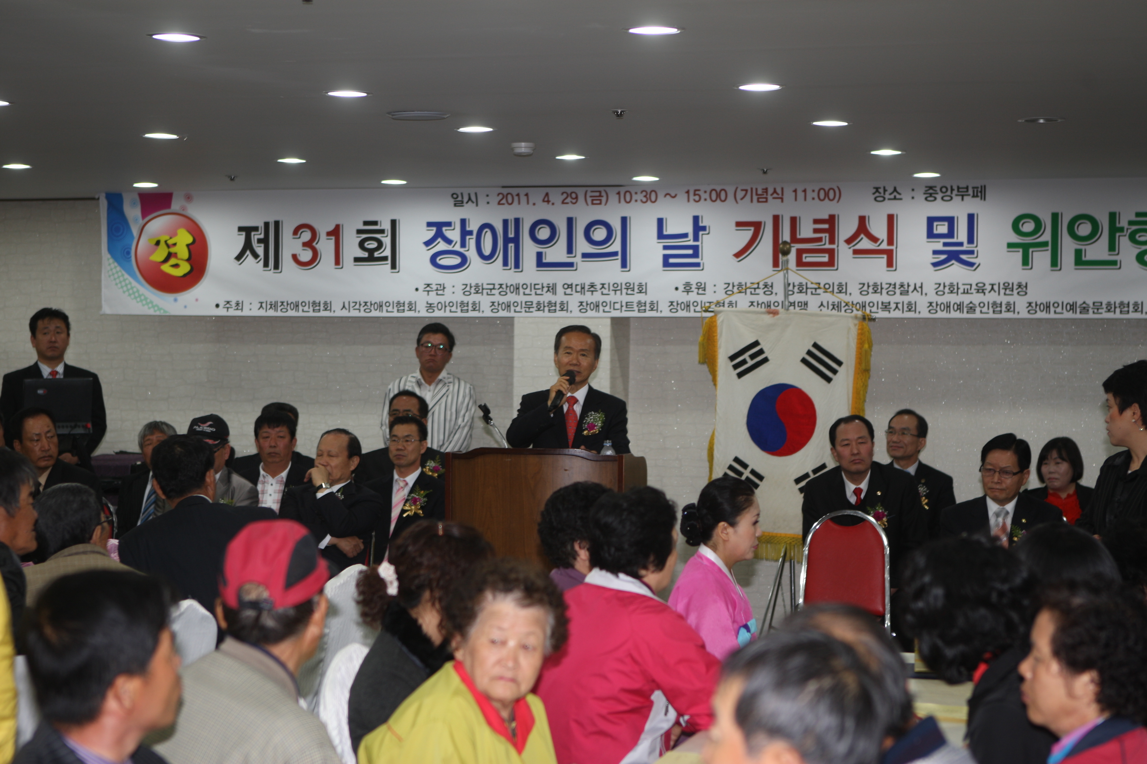 강화군은 지난 29일 중앙뷔페(신문리 소재)에서 안덕수 강화군수를 비롯한 이경제 국회의원, 유호룡 군의회의장, 안영수·윤재상 시의원, 기관단체장, 장애인 단체 등 500여명이 참여한 가운데 제31회 장애인의 날 기념행사를 개최 했다.