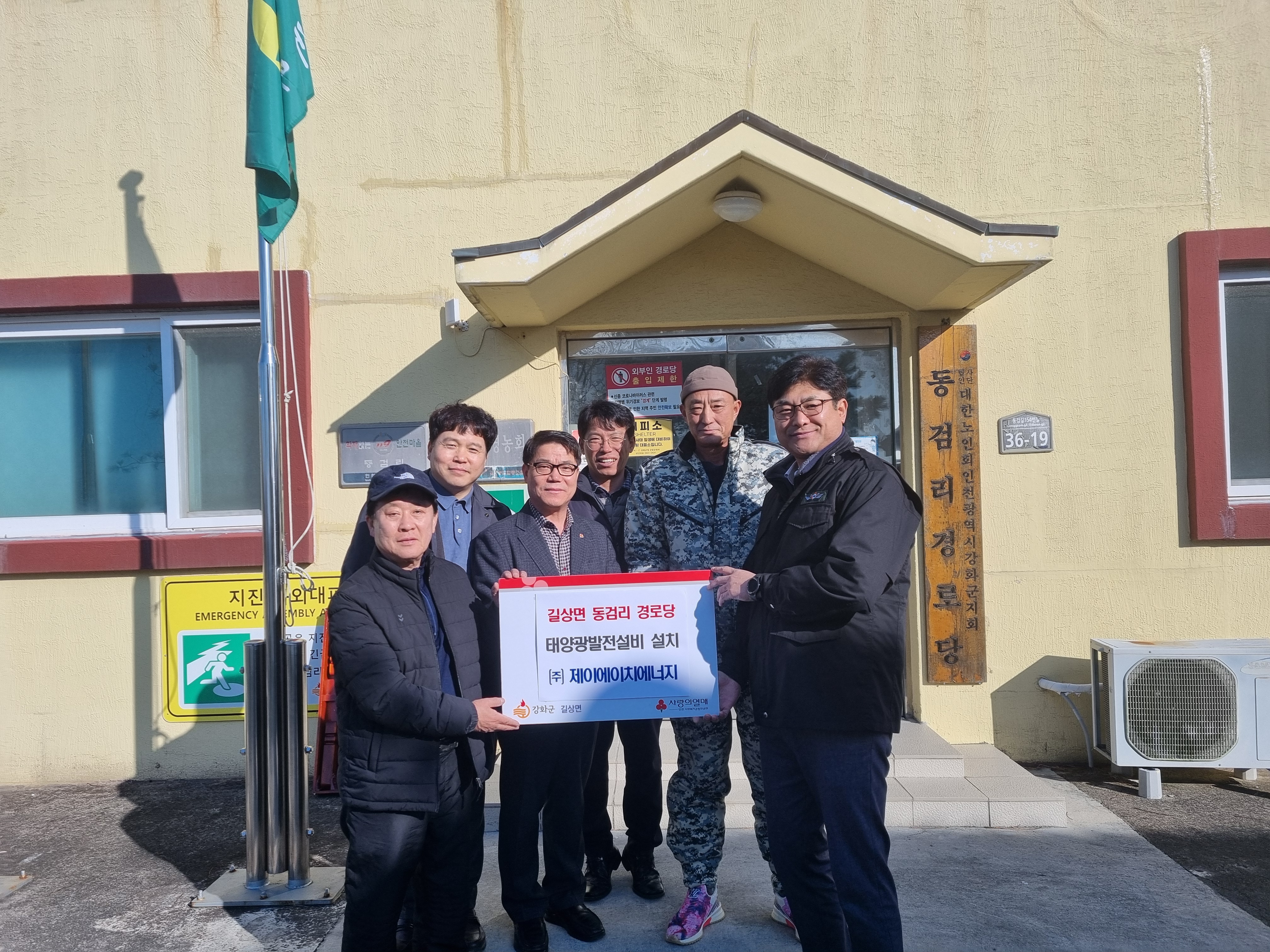 ㈜제이에이치에너지, 길상면 동검리 경로당에 태양광 설비 지원
