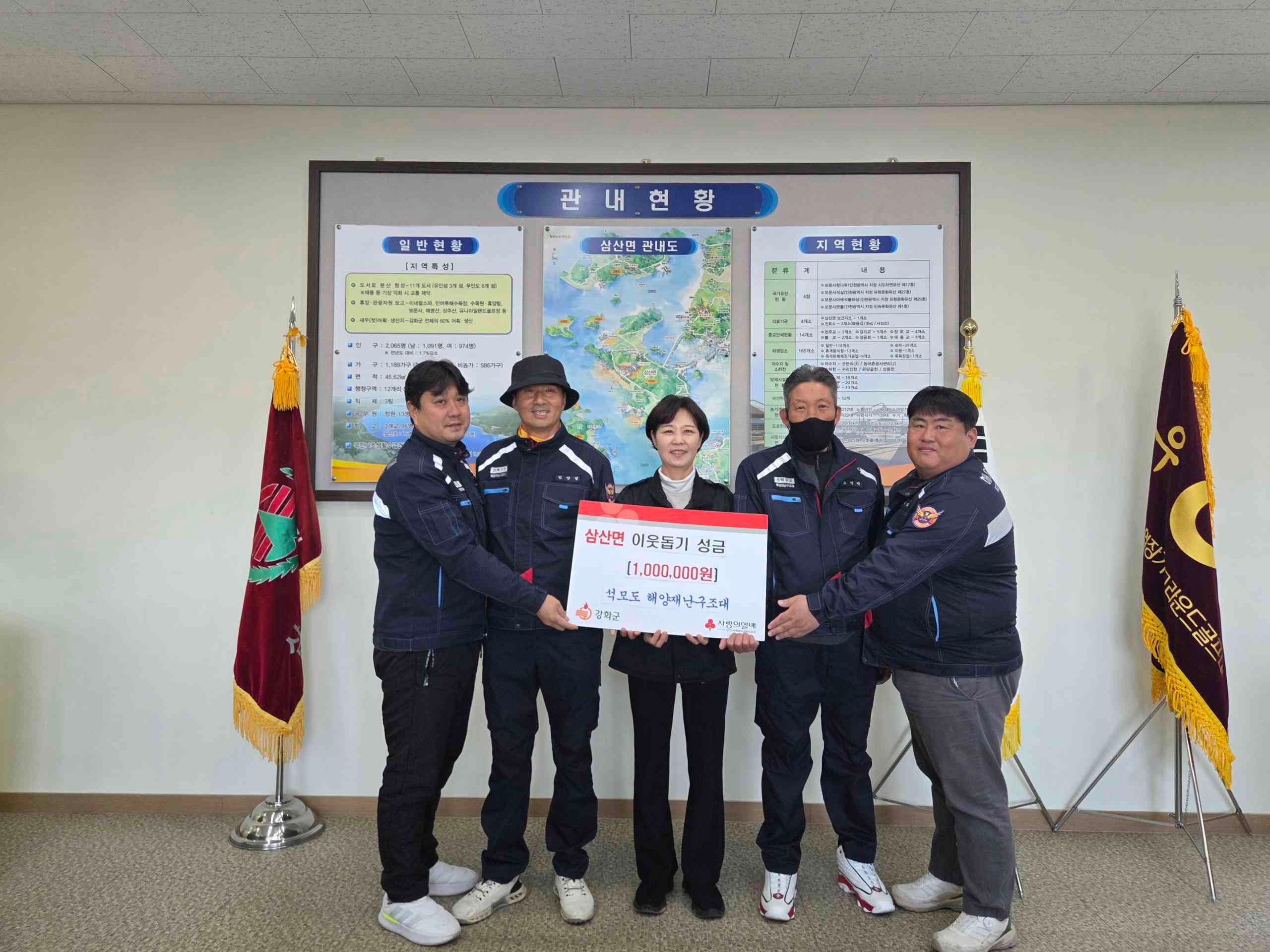 강화군 삼산면(면장 고영자)은 지난 22일, 석모도 해양재난구조대(부장 김상열)에서 이웃을 위한 성금 100만 원을 전달하며 지역사회를 위한 따뜻한 손길을 이어가고 있다고 밝혔다.