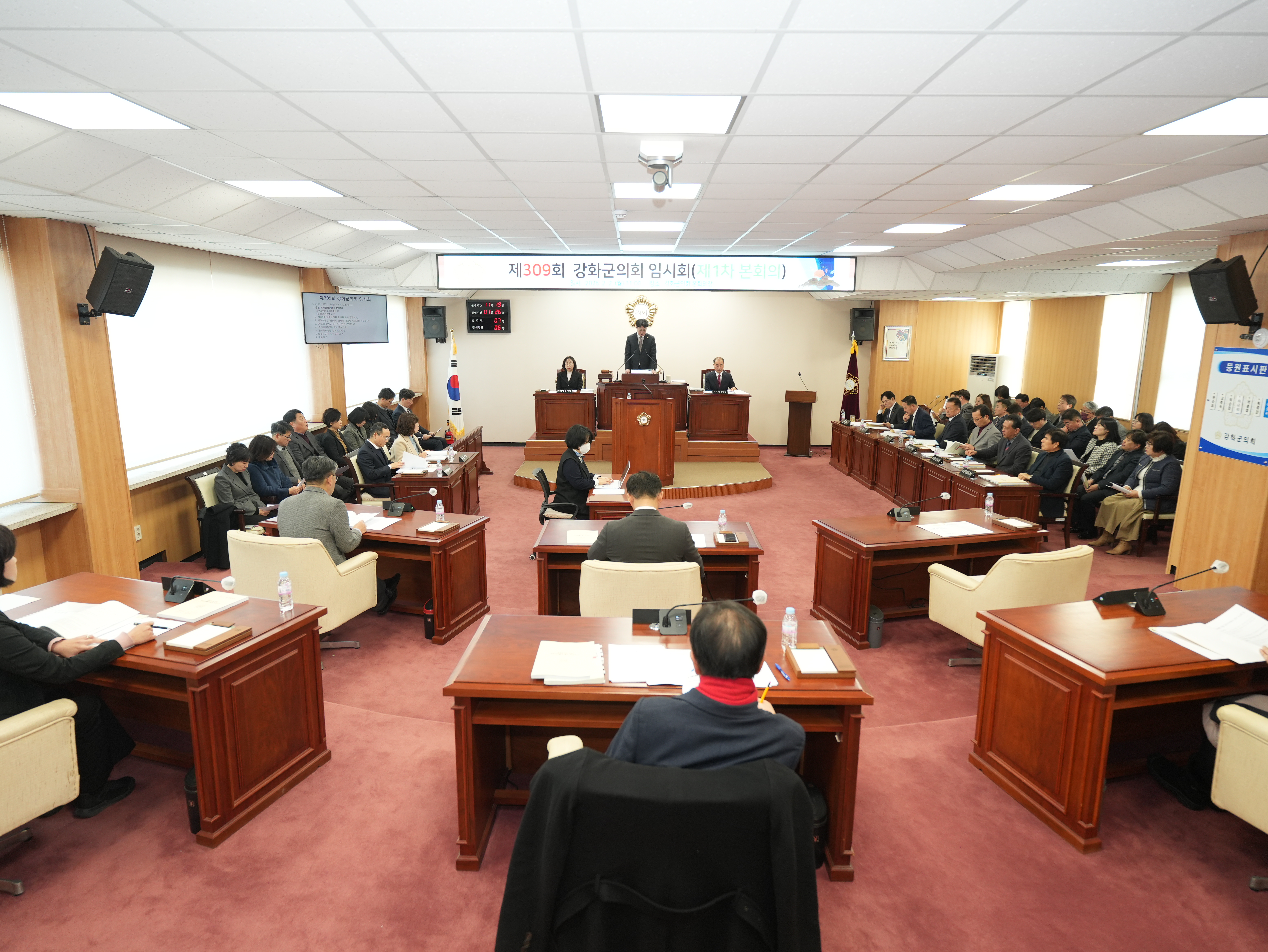 강화군의회(의장 한승희)는 2일 제309회 임시회를 개회하고 2월 4일까지 3일간의 의사일정에 돌입했다.