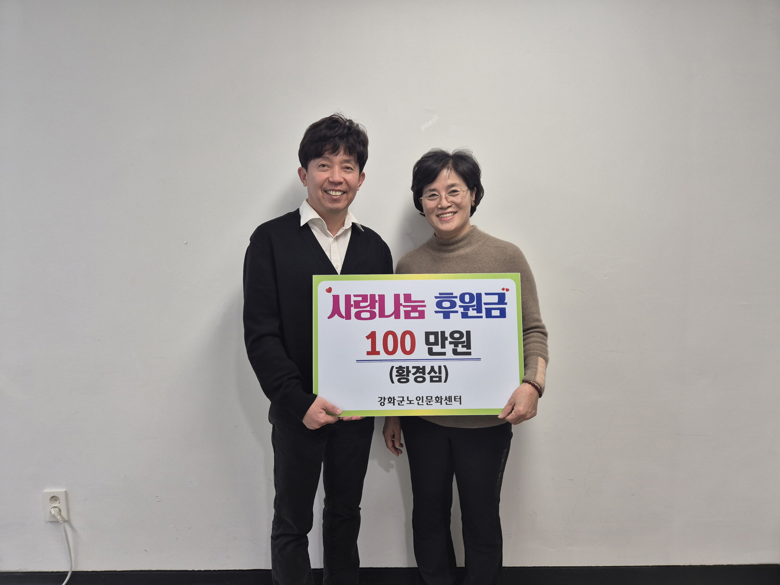 황경심님은 “강화군노인문화센터를 이용하며 많은 정과 도움을 받아왔다”며, “설 명절을 맞아 어르신들과 따뜻한 마음을 나누고 싶어 기부에 동참하게 됐다”고 소감을 전했다.