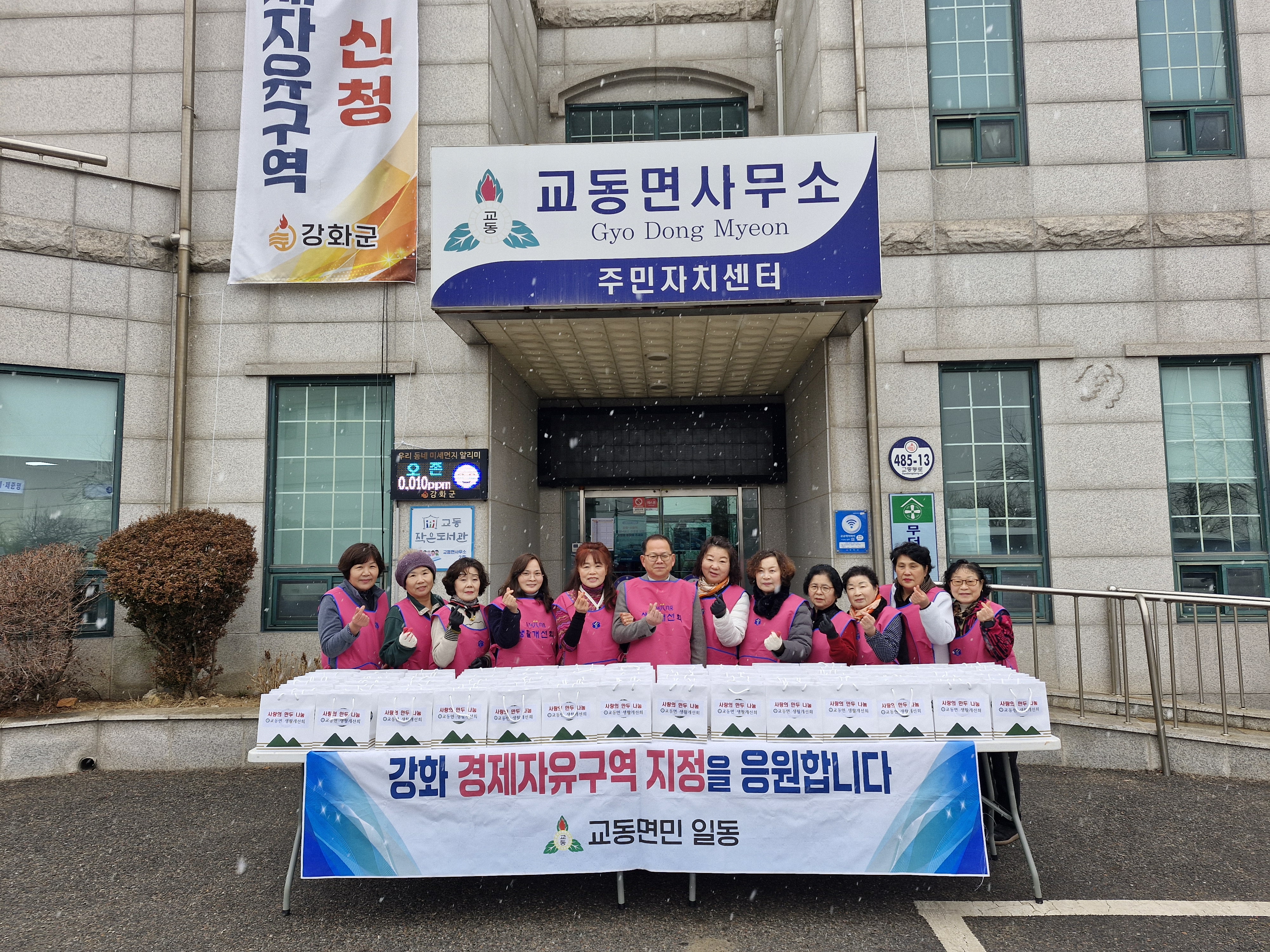 강화군 교동면 생활개선회(회장 홍옥화)가 지난 10일, 설 명절을 맞아 만두 나눔 행사를 개최했다.