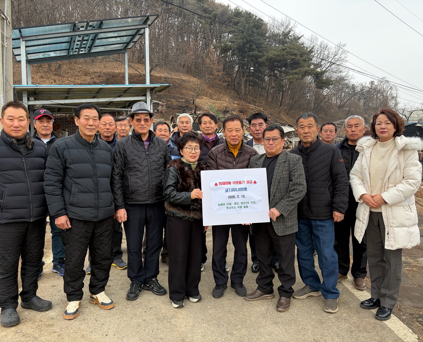 송해면은 관내 단체 11곳과 양오2리 주민들, 개인 기부자인 이경록(우뢰자연정미소 대표)·임병덕·박시현 씨와 면사무소 직원들이 동참해 총 700만 원의 성금을 모았다고 밝혔다.