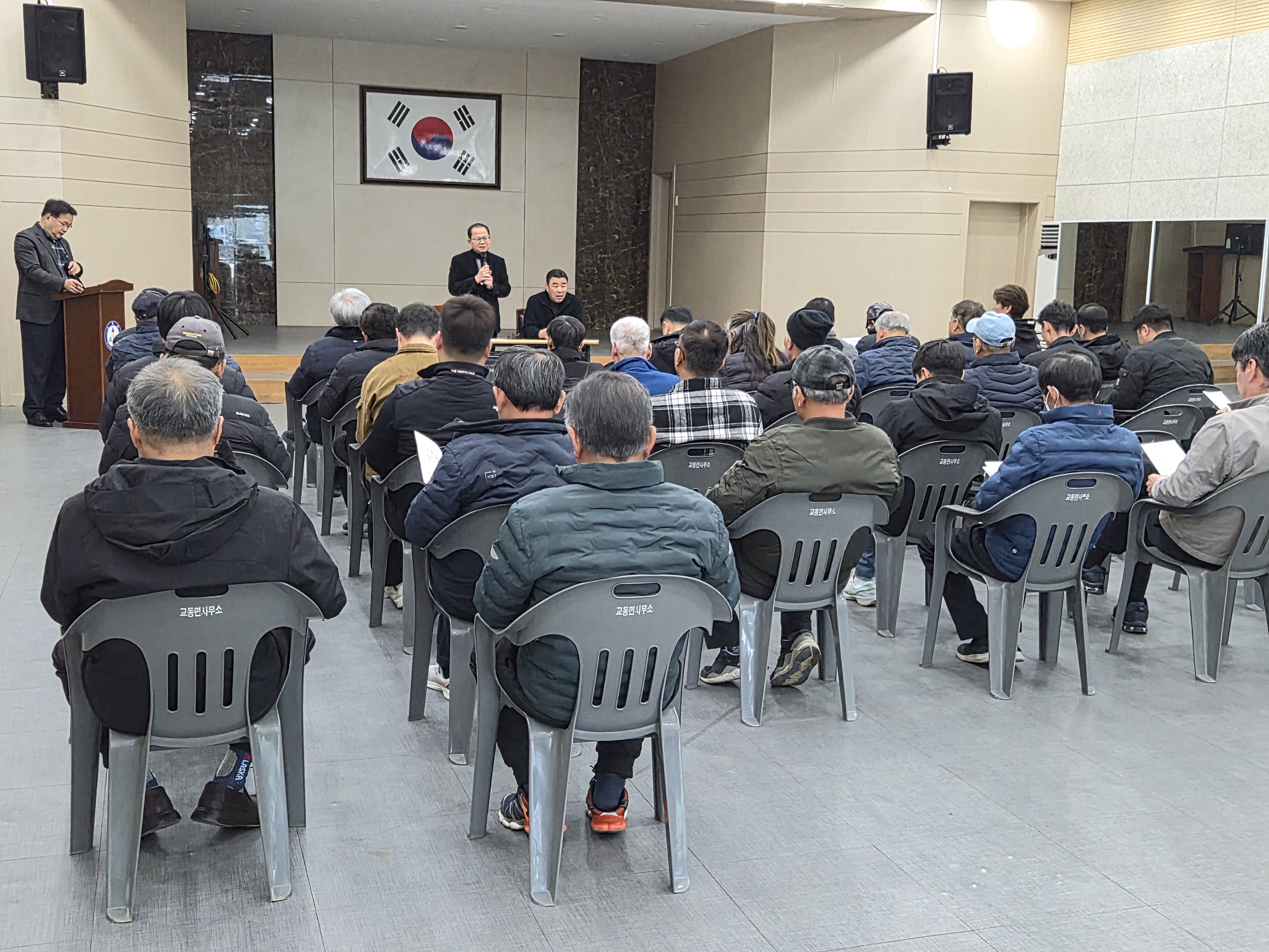 강화군 교동면(면장 최동관)이 면민회관에서 교동면 제설단 해단식 및 간담회를 개최하고, 2025~2026년 겨울철 제설 활동을 성공적으로 마무리한 단원들을 격려하는 자리를 가졌다.