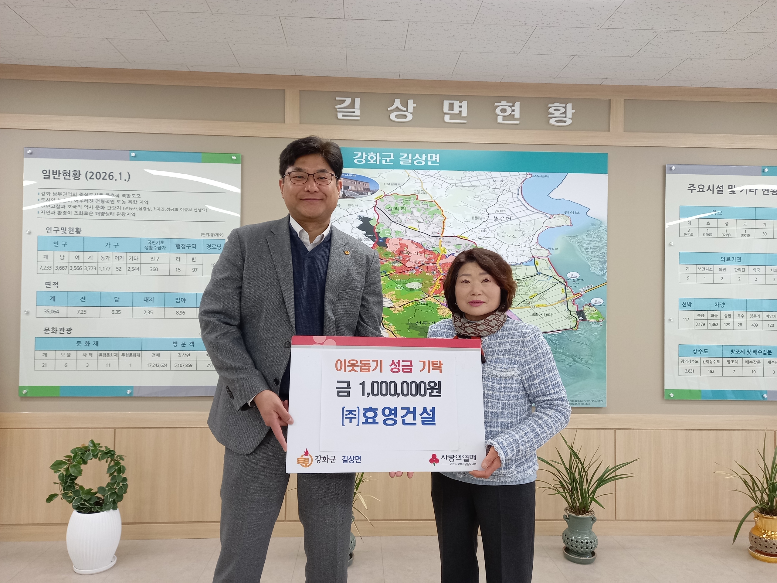 길상면, ㈜효영건설로부터 성금 100만 원 기탁받아