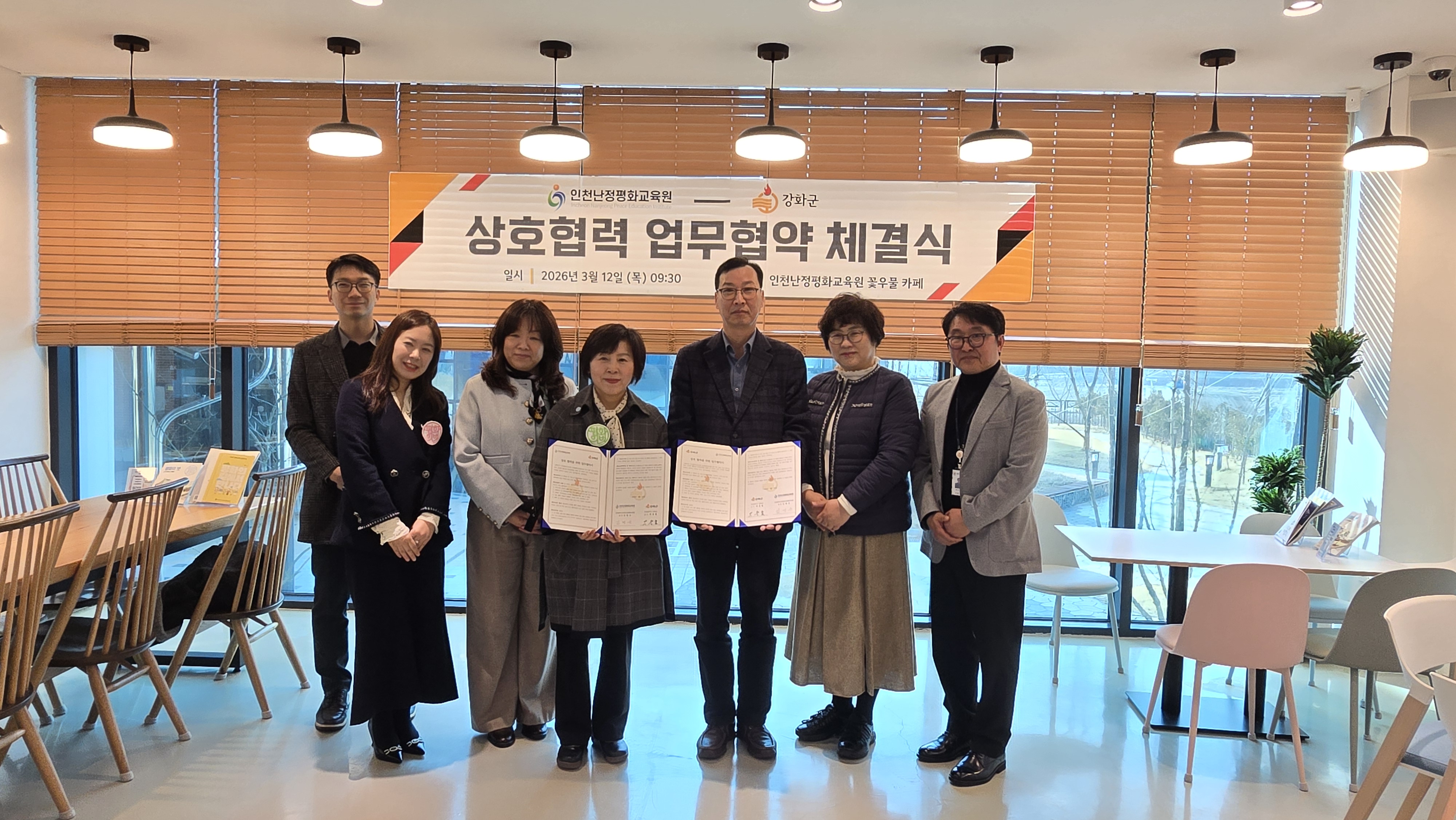 강화군(군수 박용철)은 인천난정평화교육원(원장 김명순)과 지난 12일 취약계층 아동의 평화교육 지원 강화를 위한 업무협약을 체결했다.