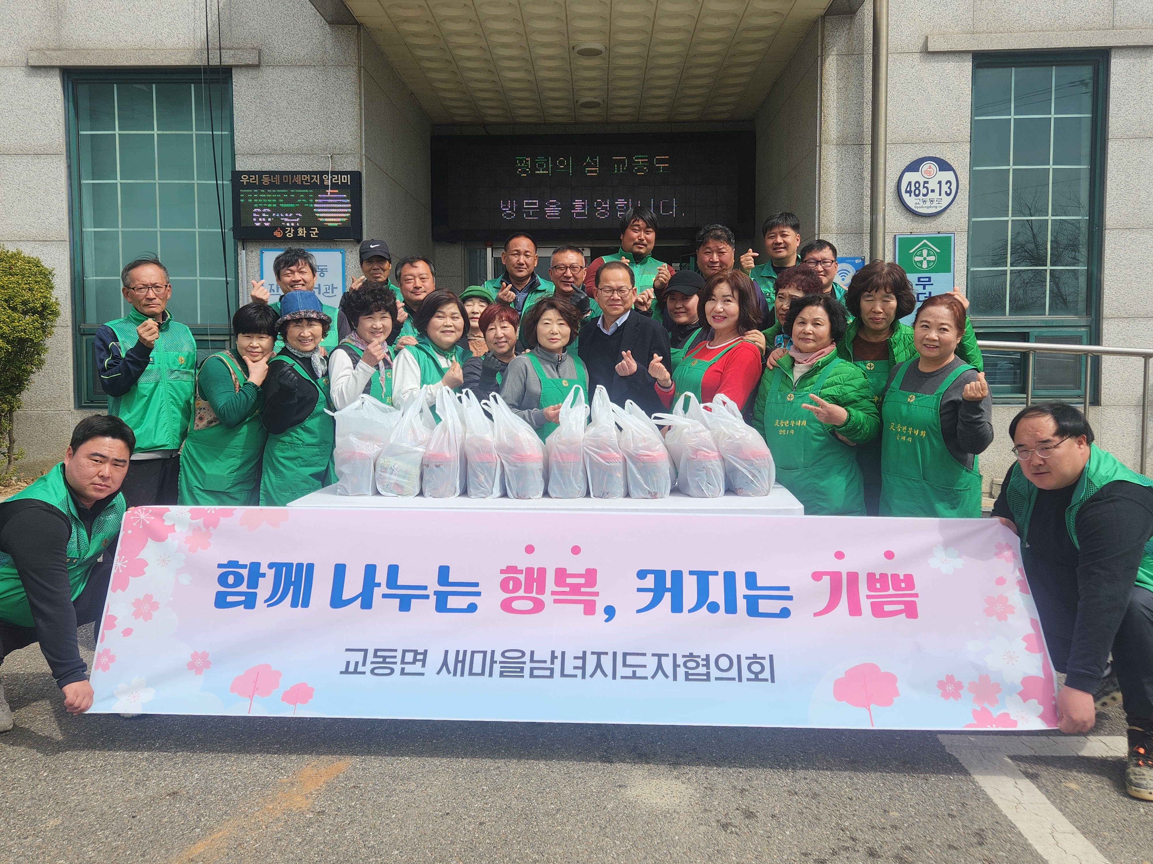 강화군 교동면(면장 최동관)은 지난 24일, 새마을남녀지도자(회장 최복환, 부녀회장 나인숙)에서 행복 나눔 행사를 열고 따뜻한 교동의 정을 나누는 시간을 가졌다고 전했다.