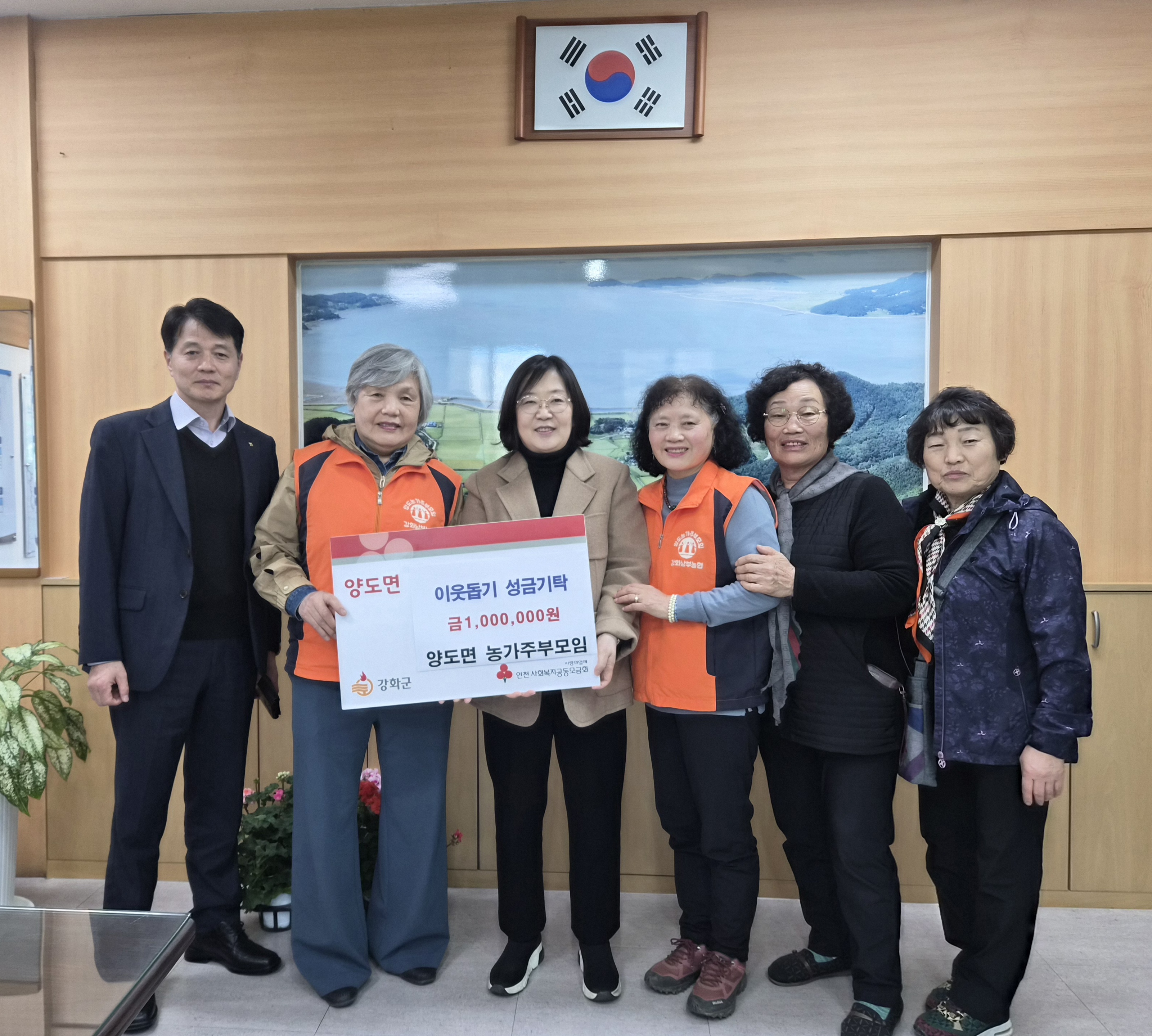 강화군 양도면(면장 조현미)은 지난 25일, 농가주부모임(회장 김금연)에서 지역 내 어려운 이웃들을 위해 사용해 달라며 성금 100만 원을 기부했다고 밝혔다.