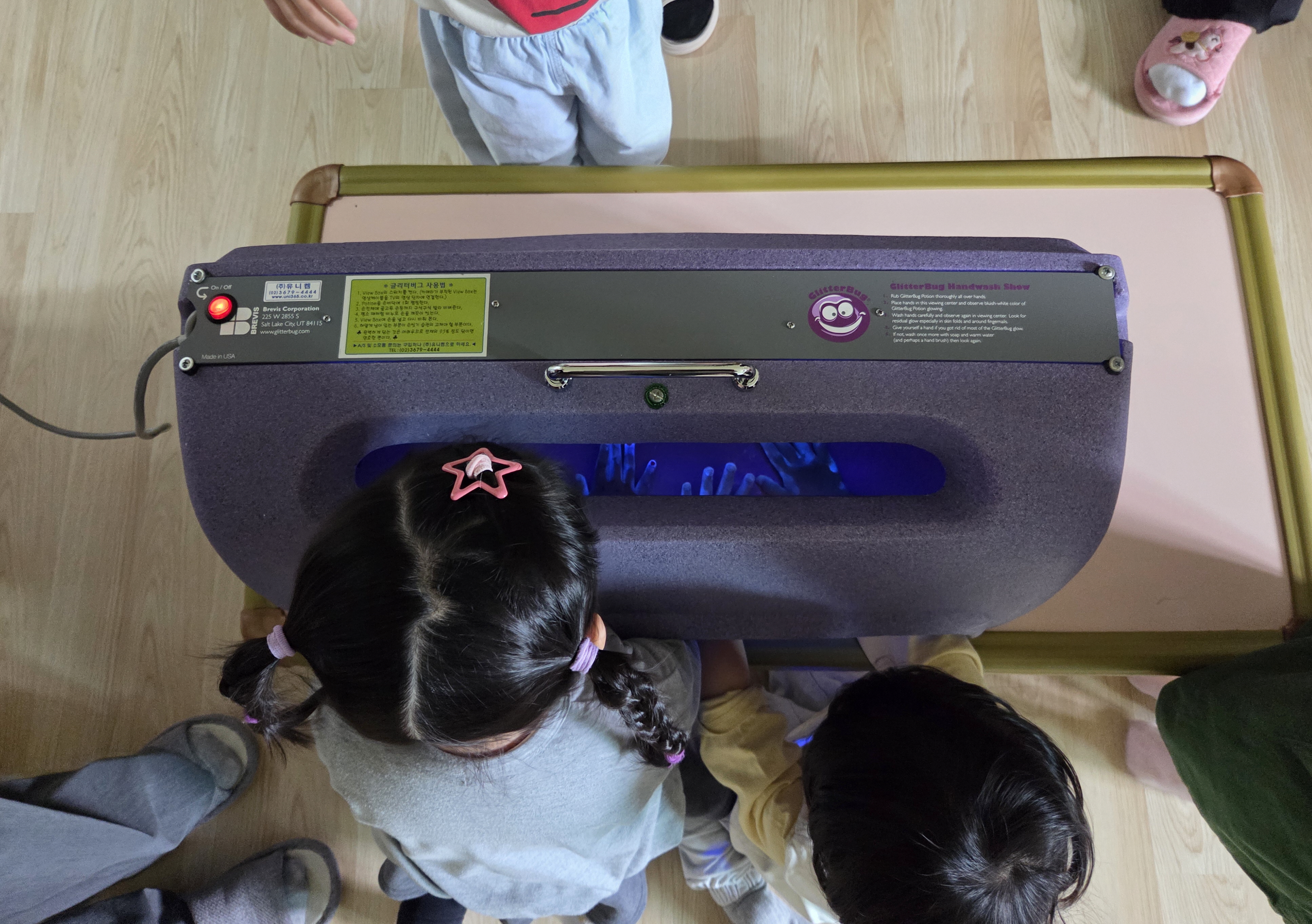특히, 이번 교육에서는 아이들이 눈으로 직접 세균을 확인할 수 있는 ‘뷰박스(View-box)’를 활용한 체험형 교육이 큰 호응을 얻고 있다. 형광 로션을 바르고 손을 씻은 뒤, 뷰박스 검사기로 손에 남은 세균(형광물질)을 직접 눈으로 확인하는 체험형 방식으로 진행돼 흥미를 높이는 동시에 교육 효과를 극대화했다는 평가다.