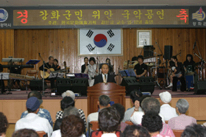 대한노인회 강화군지회(회장:전동결)에서는 20일 강화군청 4층 회의실 에서 주민 250여명이 참석한 가운데 강화군민 위안 국악공연을 개최했다.