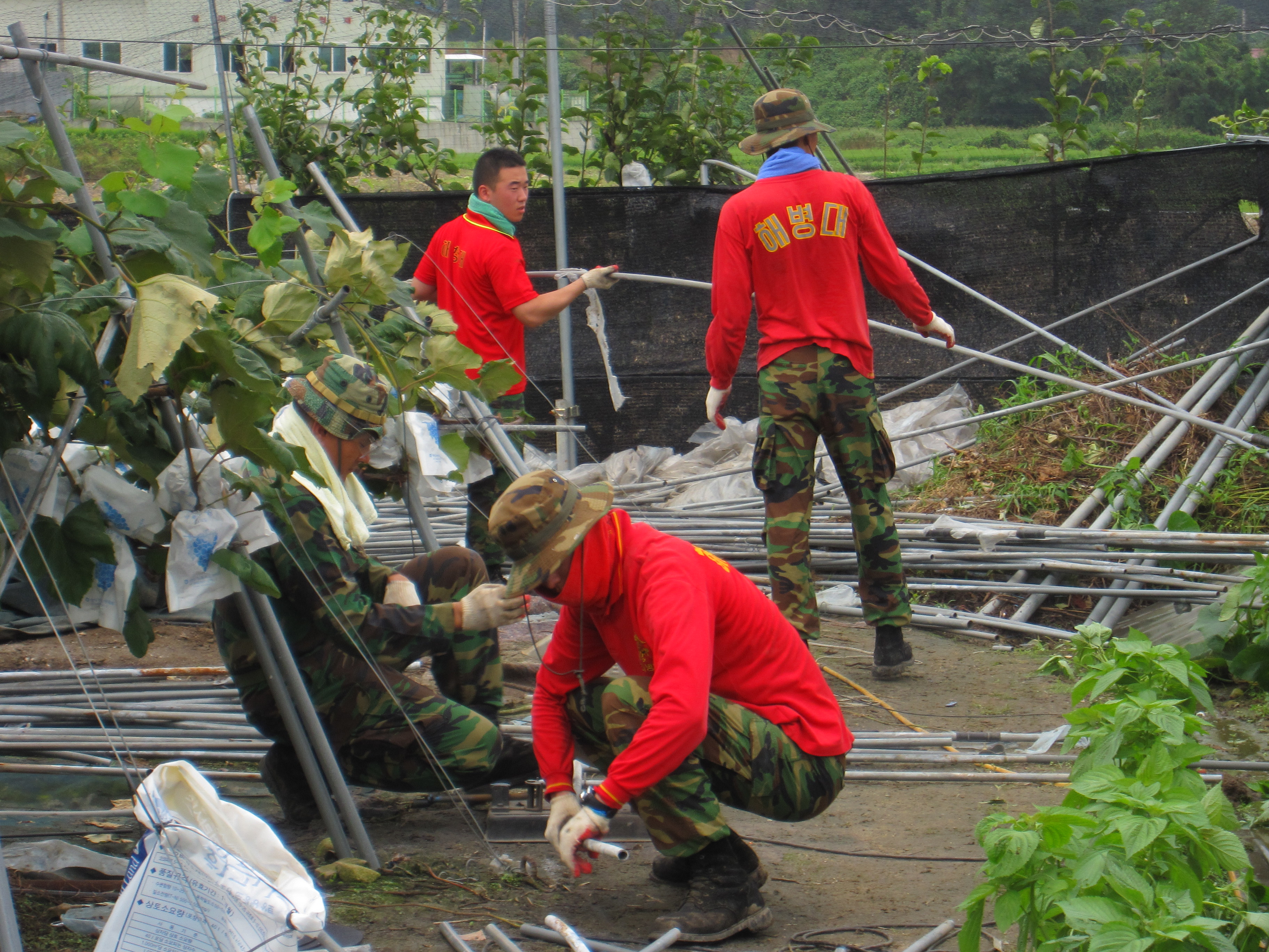 지난 8일 발생한 태풍 '무이파'로 비닐하우스 3,200㎡ 피해를 입은 화도면 농가에 강화 해병부대 장병 20여명이 훼손된 비닐하우스 철제를 제거하고 과실을 정리하는 등 신속한 복구에 앞장섰다.