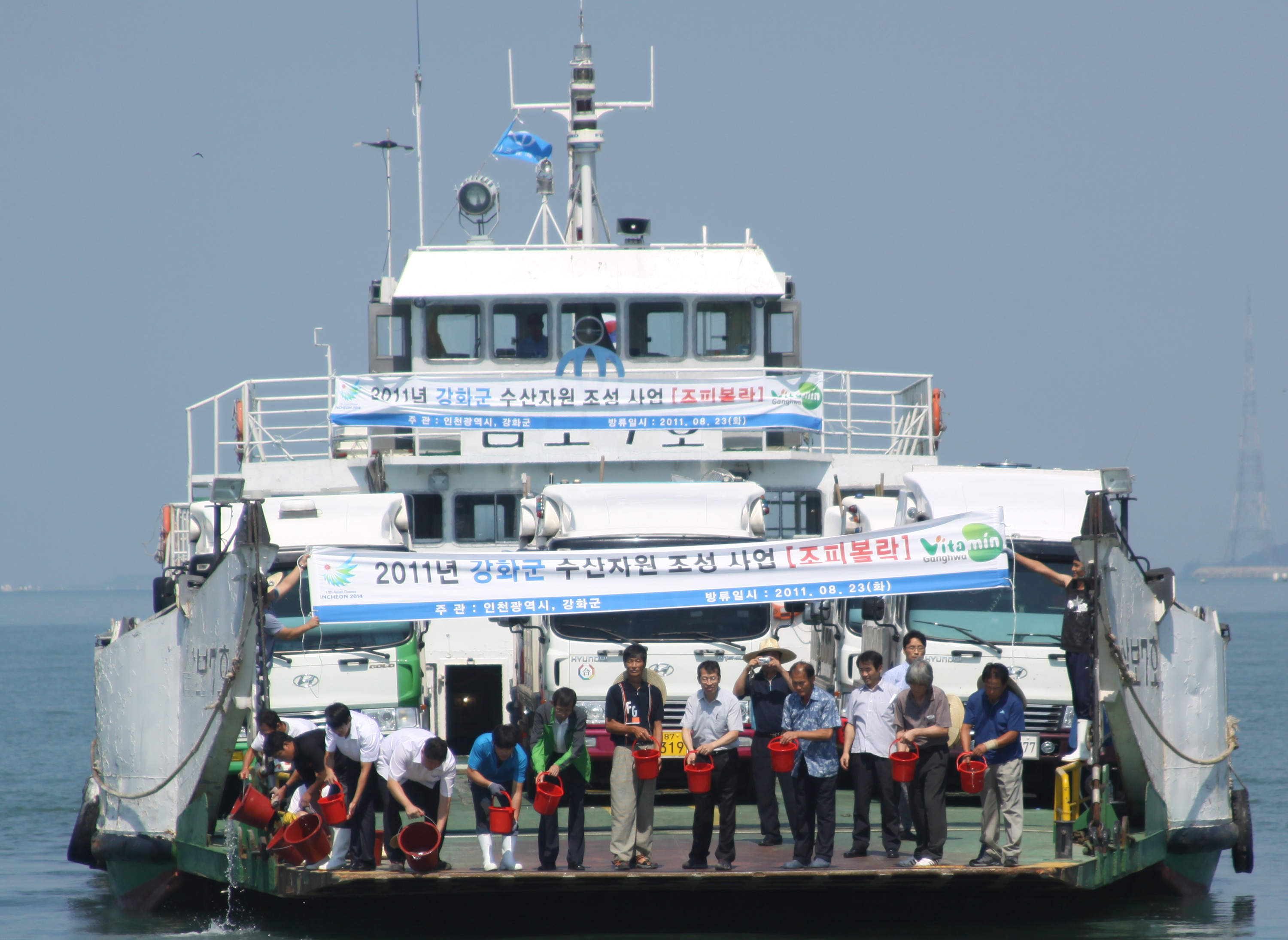이날 치어방류사업은 강화군 주관으로 수산종묘관리사업지침에 의해 건강상태와 전염병 감염여부 조사 이후 실시되었으며 군 관계공무원, 수산사무소, 수산자원연구소, 경인북부수협, 지역 어촌계장 및 어업인 등 22여명이 방류에 참여했다.