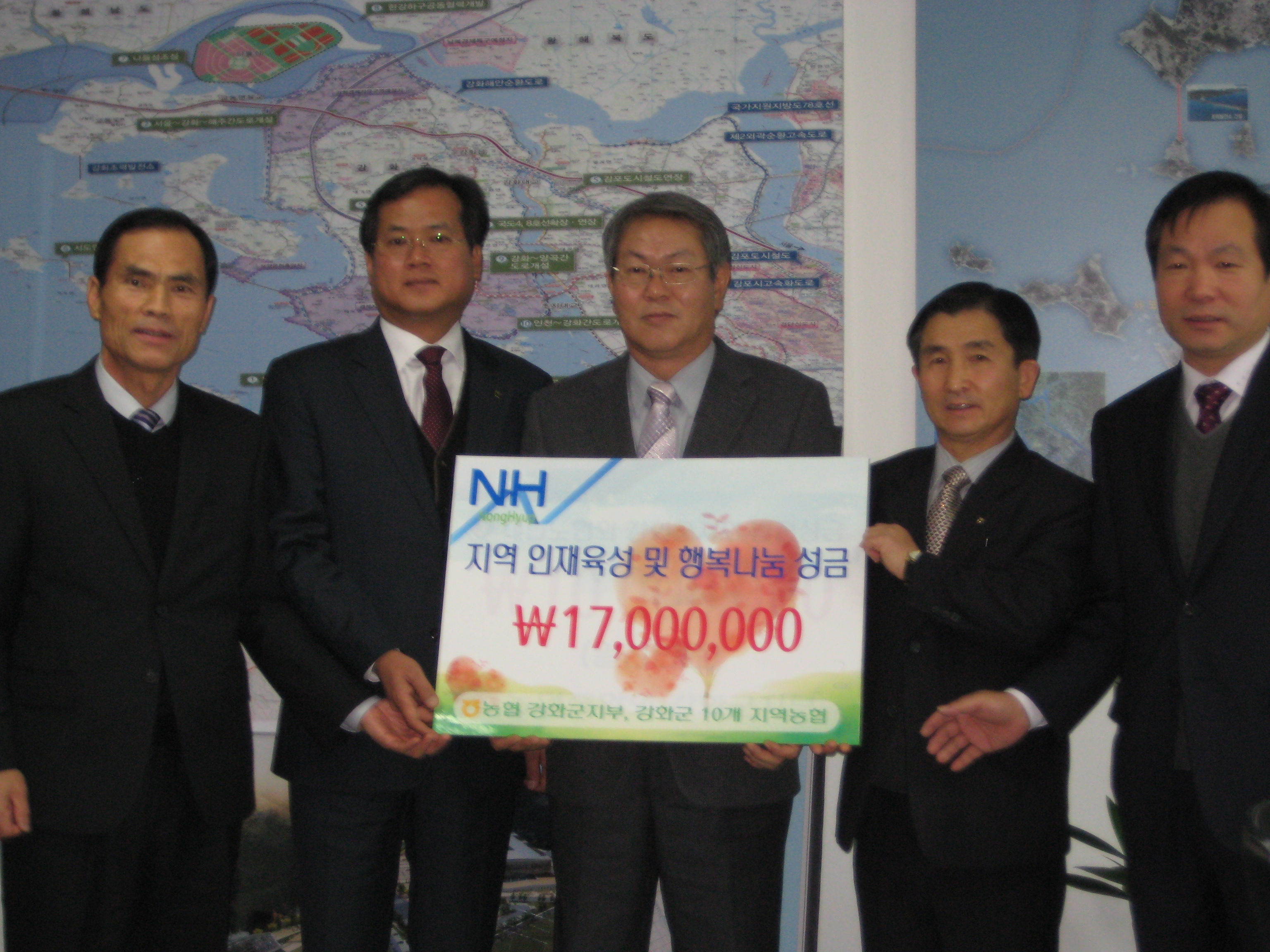 농협중앙회 강화군지부(지부장 전경진), 강화농협(농협장 유도상)은 지난 19일 강화군 관내 저소득자녀를 위한 학비 지원과 불우 이웃을 위한 생활안정 지원 목적으로 불우이웃돕기 성금을 강화군에 전달했다.