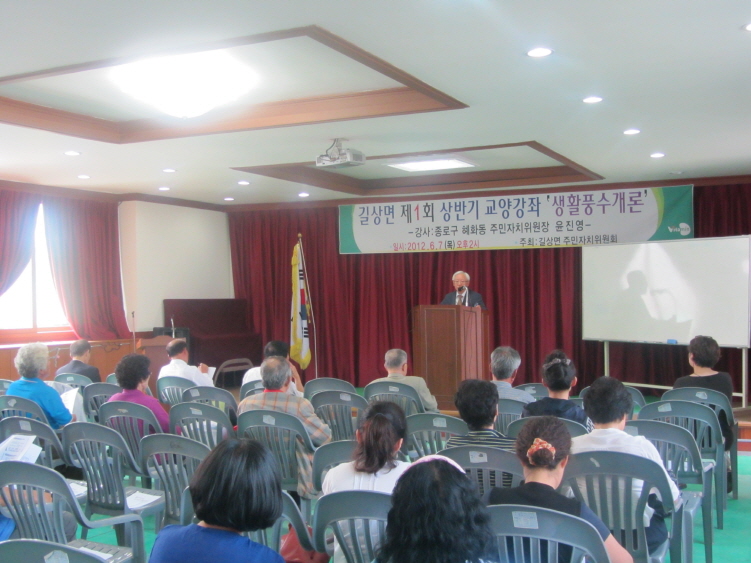 길상면 주민자치위원회 (위원장 배상욱)에서는 6월 7일 길상면 제1회 상반기 교양강좌를 어울마당에서 개최했다. 도시에 비해 상대적으로 문화혜택의 기회가 적은 지역주민을 대상으로 교양강좌를 개최함으로써 다양한 분야의 지식을 접할 기회를 마련했다.