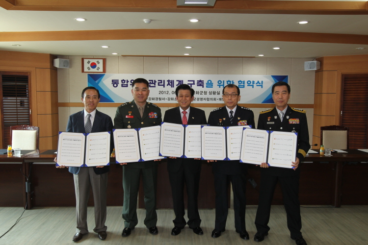 강화군(군수 유천호)은 지난 22일 강화군청 영상회의실에서 5개 기관장이 모여 민․관․군․경 통합위기관리체계 구축을 위한 업무 협약을 체결했다.이날 협약식에는 강화군수를 비롯해 강화경찰서장, 강화소방서장, 강화경영자협의회장, 해병대제2사단장 등이 참석했다.