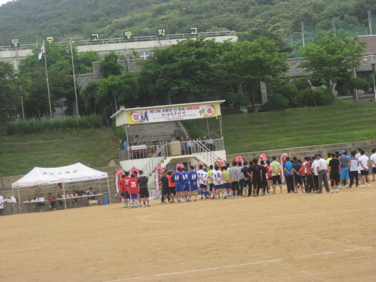 교동면선후배체육회(회장 최근홍)는 6.23(토) 09:00 교동중․고등학교 운동장에서 제13회 교동면 선․후배 체육대회를 개최했다. 교동면선·후배체육회가 주관하고 유관기관 단체의 후원으로 치러진 이번 행사에는 58년생부터 71년생 기수별로 교동중학교 졸업생, 동창생 13개팀 350여명이 참석한 가운데 축구, 배구, 릴레이 계주(여) 경기를 치루어 성황을 이루었다. 이 자리에는 유천호 강화군수를 비롯한 관계 기관장들이 참석하여 선수들에게 아낌없는 박수와 격려를 보내며 힘을 실어 주었다.