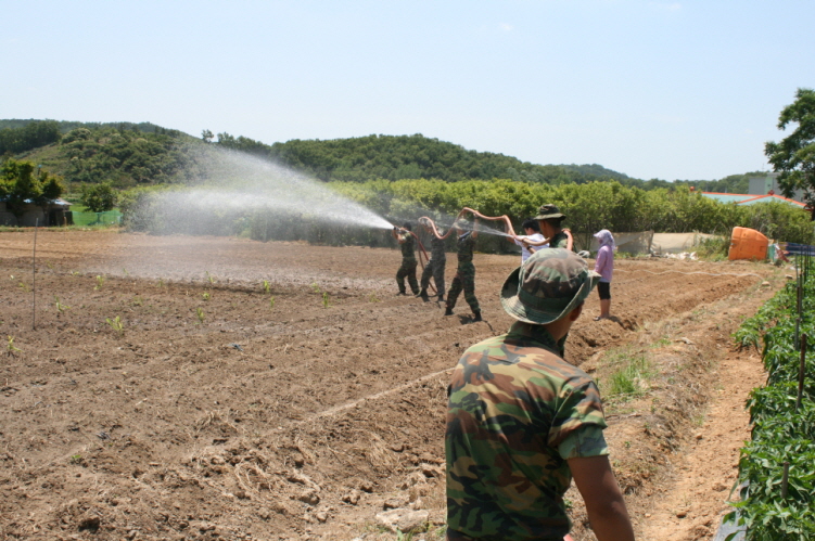 해병대 제 2사단(사단장:이상훈 )는 지난 6.27일부터 살수차량 10대, 50명의 병력을 동원하여 가뭄이 극심한 강화읍 양사면등 6개읍면 17개리의 밭작물 50,000㎡에 농업용수를 공급하고 있다.