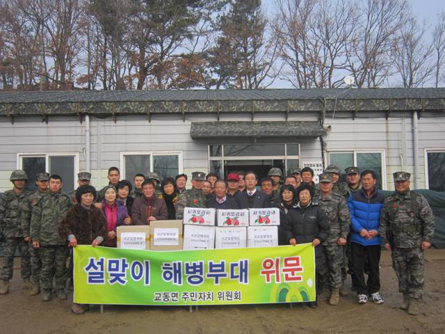 강화군 교동면 주민자치위원회(위원장 박상철)는 지난 1월 24일 설을 맞아 교동면 인사리 소재 해병대를 위문했다.