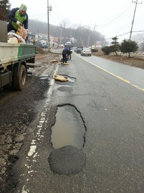 군은 1월 중순부터 도로보수원들이 매일 관내 주요 도로를 순찰하고 있으며, 파손된 도로 19개소에 록하드(응급보수자재) 400포(10톤)를 사용해 응급 복구하고 있다. 또한, 읍면에서 조사한 간선도로에 대해서도 구간을 확대해 보수를 완료할 예정이다.