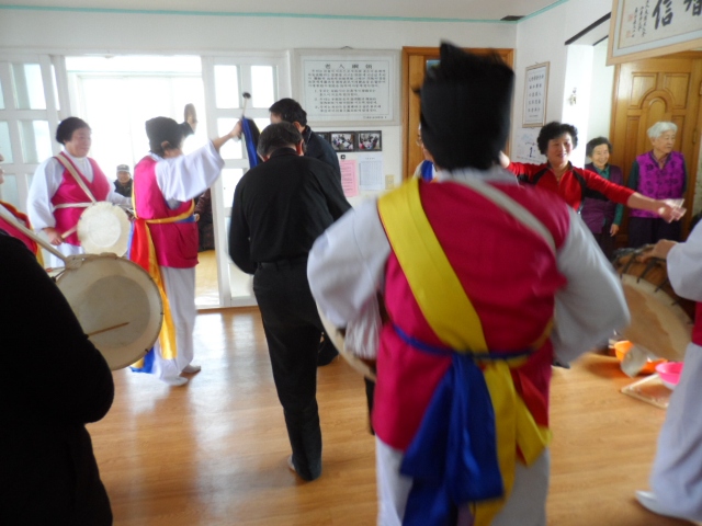 (사진 : 선원면 풍물동아리가 경로당에서 위문 공연하는 모습)