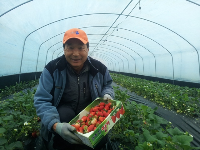초지에서 유명한 고구마 재배 강소농인 그는 딸기를 앞으로 남은 여생을 함께할 작물로 꼽는다. 매해 3ha정도의 고구마를 재배하여 직거래로 버는 돈이 만만치 않으나 작업시 힘이 많이 드는 작물이다. 씨 고구마를 심거나 수확할 때 20kg이상 되는 박스를 나르는 일이 많다. 대다수 농촌인력이 70대가 넘은 할머니들이다 보니 힘에 부치는 경우가 비일비재하고 매해 한 두명씩 돌아가시는 것을 보면서 인력을 많이 동원하는 일에 한계를 느끼기 시작하였다. 또한 고구마를 수확한 이후에는 딱히 할 일이 없어 무료한 시간을 보내는 것도 싫증나서 시작한 것이 시설딸기 재배이다. 2011년 강화군에서 보조를 받아 비닐하우스 5동(1,650㎡)을 짓고 처음 딸기를 심었는데 겨우내 온도 관리를 잘못하여 수확을 거의 못하는 낭패를 보았다. 그래서 2012년에 연중 온도 차가 작은 지하수를 이용한 수막재배를 하여 2천만원의 매출을 올렸다. 직거래와 체험을 병행하여 3.3㎡(평)당 4만원 정도의 매출을 올려 고구마에 비해 2배 이상의 소득을 올릴 수 있었다.