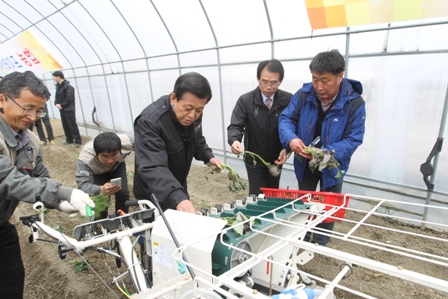 셋째, 씨앗테이프 농법 연시로 이 기술은 파종할 종자를 테이프에 일정 간격으로 부착하고 고르게 다듬어진 포장을 주행하면서 테이프를 매설하고 복토, 진압하는 농법으로 당근, 무, 시금치, 순무 등 씨앗형태의 모든 작물에 적용 가능하며 씨앗의 낭비 및 경비절감 효과, 파종 후 동시발아효과, 균등상품 및 다수확 효과, 솎음효과 증대 및 솎음작업 생략 등으로 농작업 생력화가 가능하여 2012년부터 본격적으로 농가에 보급하여 금년도에는 대대적인 보급을 서두르고 있다.