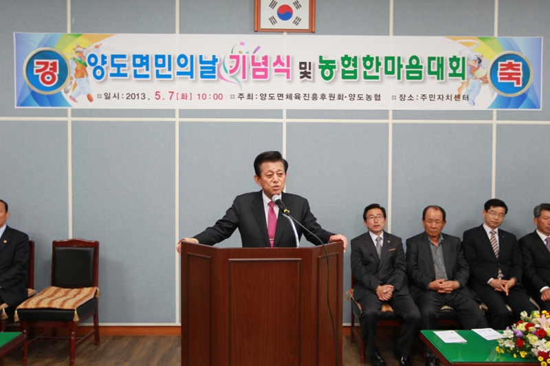 유천호 군수는 "면민의 날을 잊지 않고 기억해 주신 출향인사 및 주민들에게 감사드리며 이번 행사를 계기로 양도주민이 화합하고 지역이 발전하기 위한 계기가 되길 바란다."며 감사의 말을 전했다.