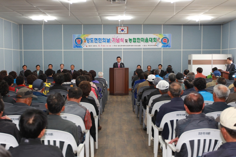 강화군 양도면(면장 연규춘)은 지난 7일 제32회 양도면민의 날을 기념하고 농업인이 한마음 한뜻으로 농업선진화 및 양도면 발전의 기틀을 마련코자 유천호강화군수를 비롯한 기관단체장과 출향인사 및 주민300여명이 참석한 가운데 기념식을 가졌다